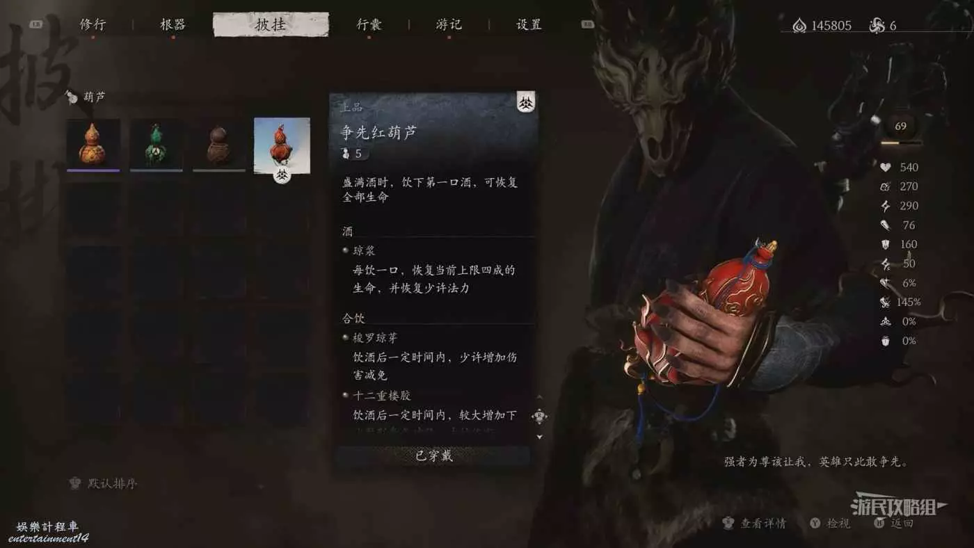 黑神話 悟空 第一回葫蘆位置及收集攻略 20 8 月 2024-08-20 廣告 作者:瑞破受氣包 來源:遊民星空 良品-藥葫蘆 獲取方法:初始解鎖,之後在如意畫軸中的申猴處可以升階成更高品質的葫蘆。 上品-爭先紅葫蘆 獲取方法:預購獎勵