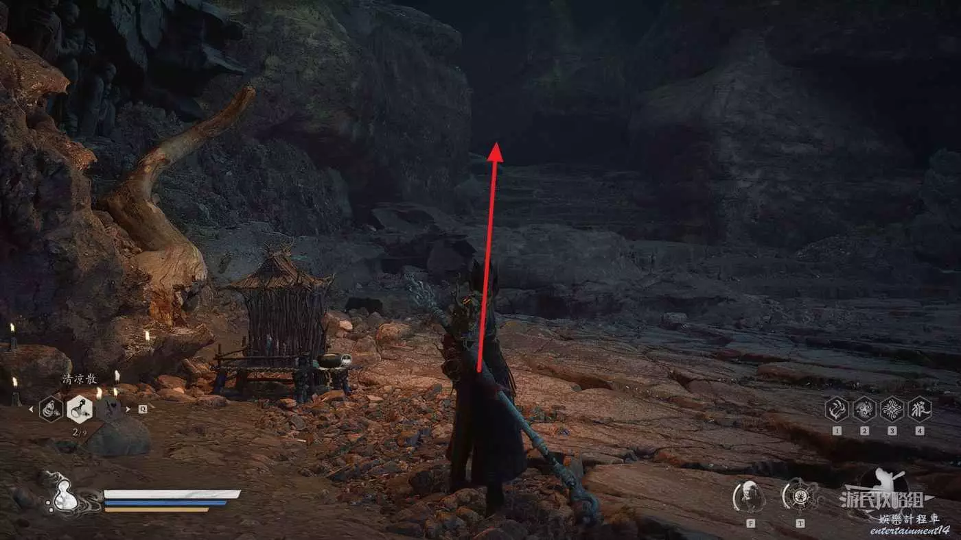從第三回【小西天-浮屠界-經筒外】出發,沿著唯一的路進入山洞,走到頭可以看到水池,在水池後的樹上即可拾取落伽香藤。