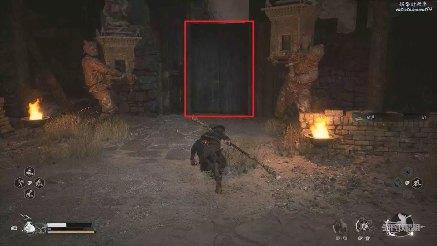 跟隨主線擊敗BOSS虎先鋒和石先鋒拿到任務道具後,從第二回【黃風嶺-沙門村-不濟谷】土地廟(BOSS沙國王&沙二郎所在區域)來到關閉的大門,使用任務道具開啟大門,穿過大門。