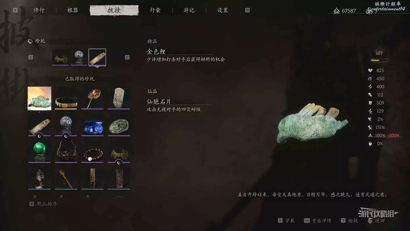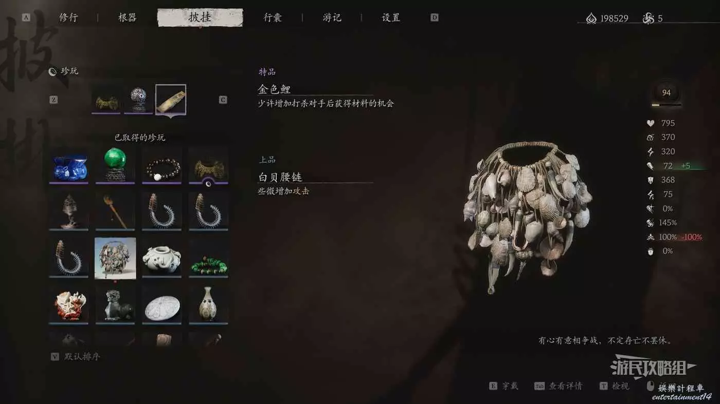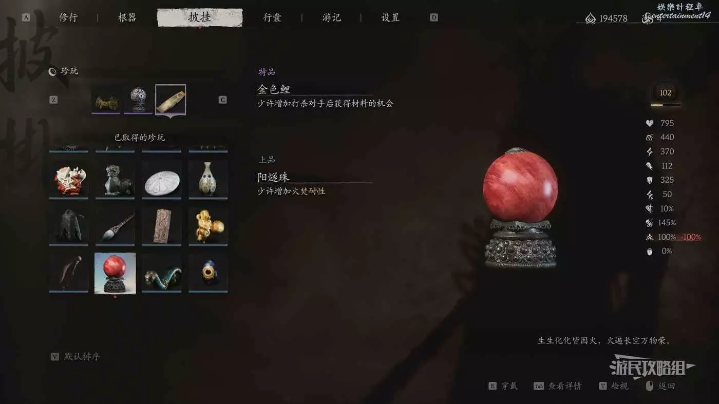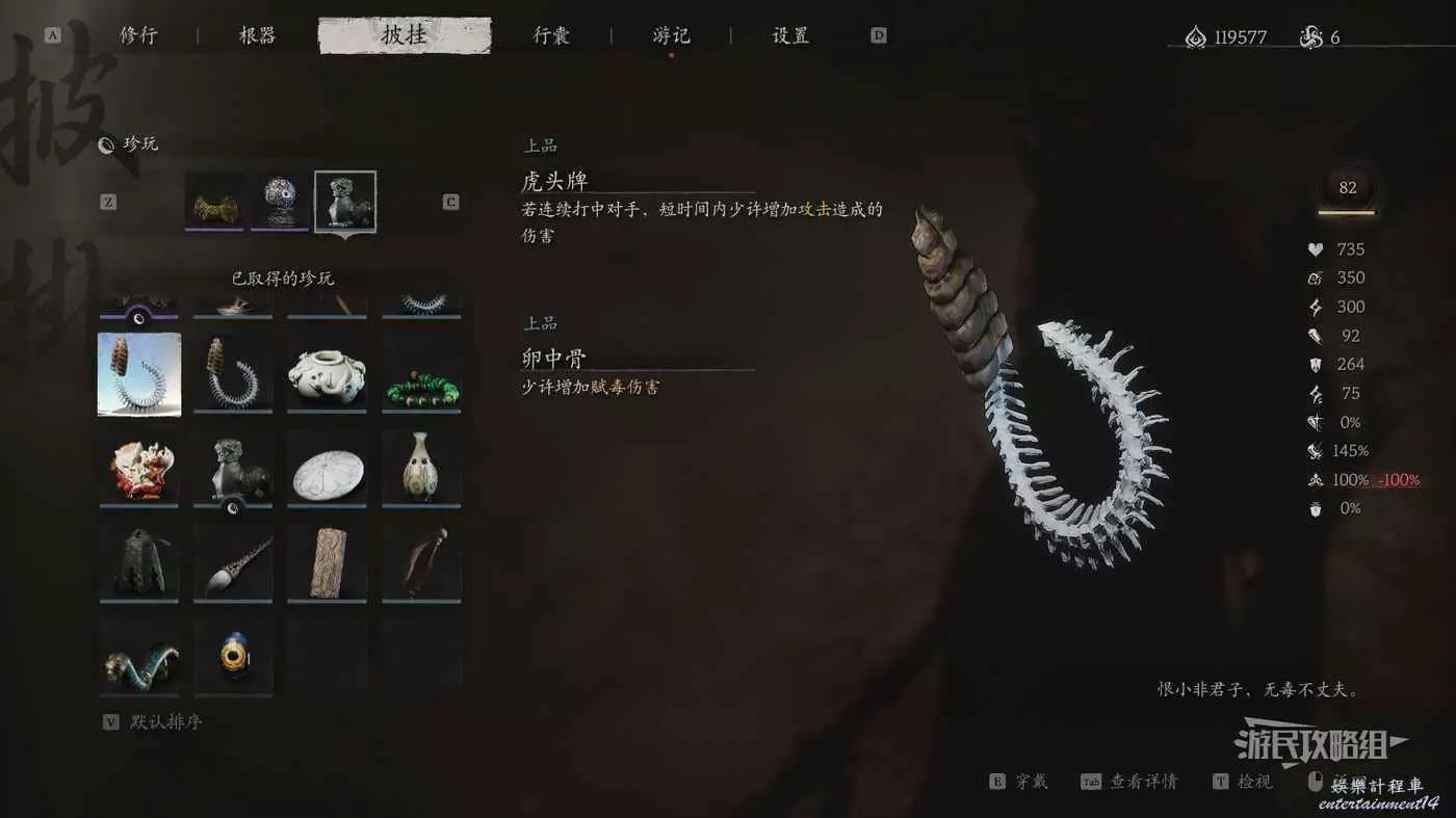 獲取方法:在BOSS沙大郎所在位置拿到飛龍鱗片後,前往第二回【挾魂崖-枕石坪】,面對土地廟往右走樓梯到達上層,往前方上面可以看到沙瀑,靠近沙瀑並與沙瀑互動,開啟大門觸發與小驪龍的BOSS戰,擊敗小驪龍後開啟樓梯上方的寶箱即可獲得此珍玩。