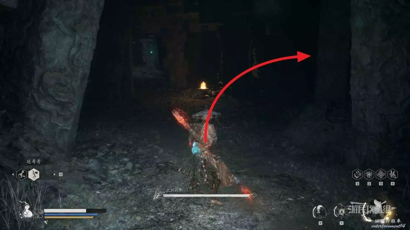 沿著唯一的路往前走,觸發與黑手道人的BOSS戰,擊敗黑手道人後,進入他後方的大門。