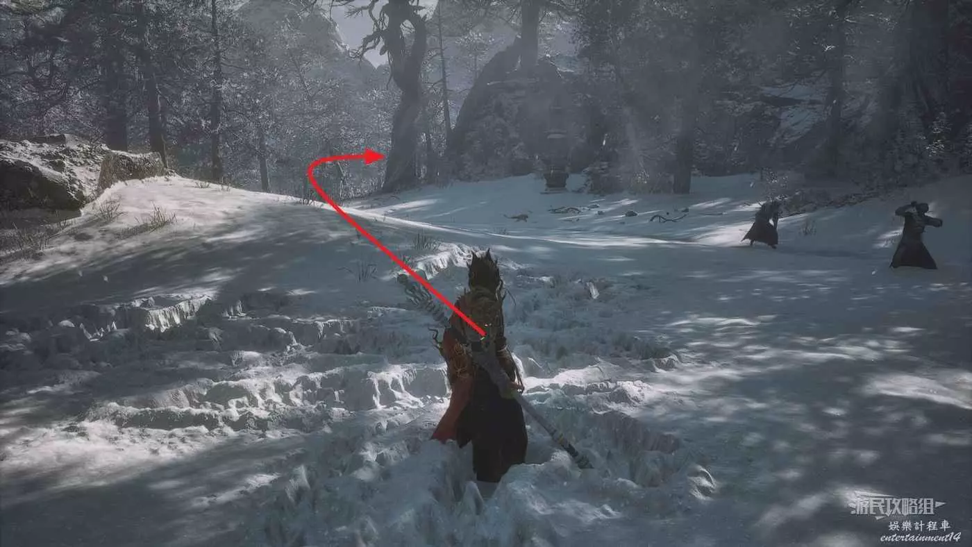 繼續沿路前進,在拐彎處往右走,可以看到一大片雪地,還有一個超大巨人,巨人就是焦面鬼王,擊殺即可獲得。