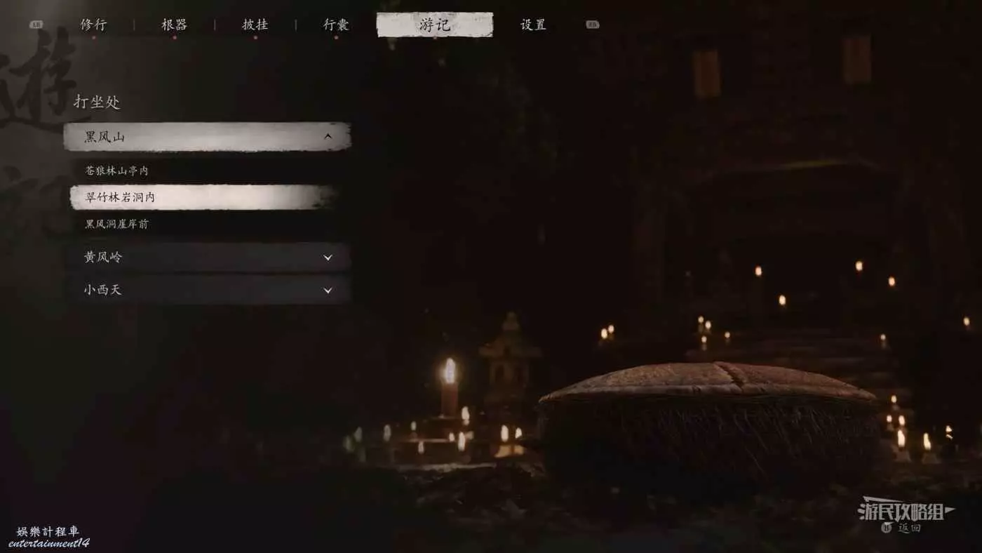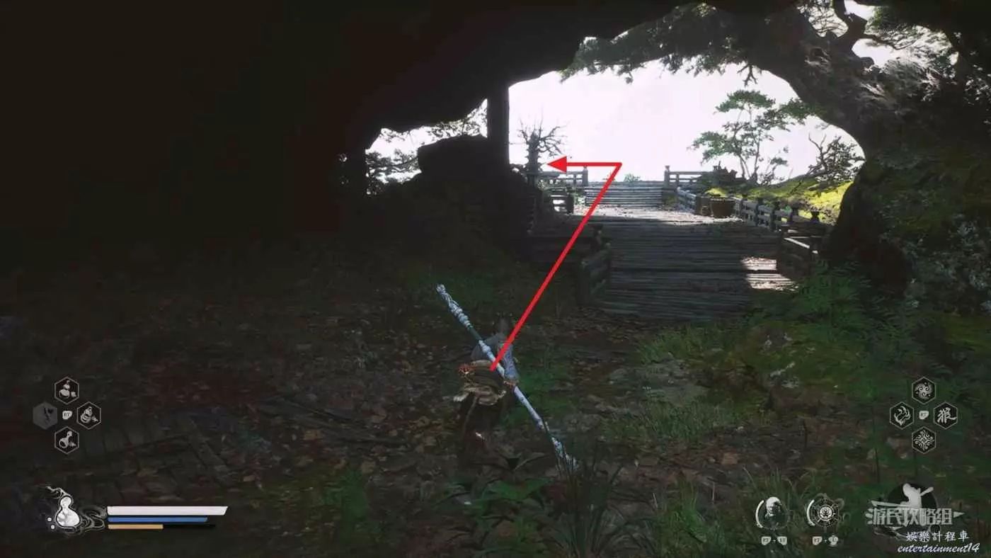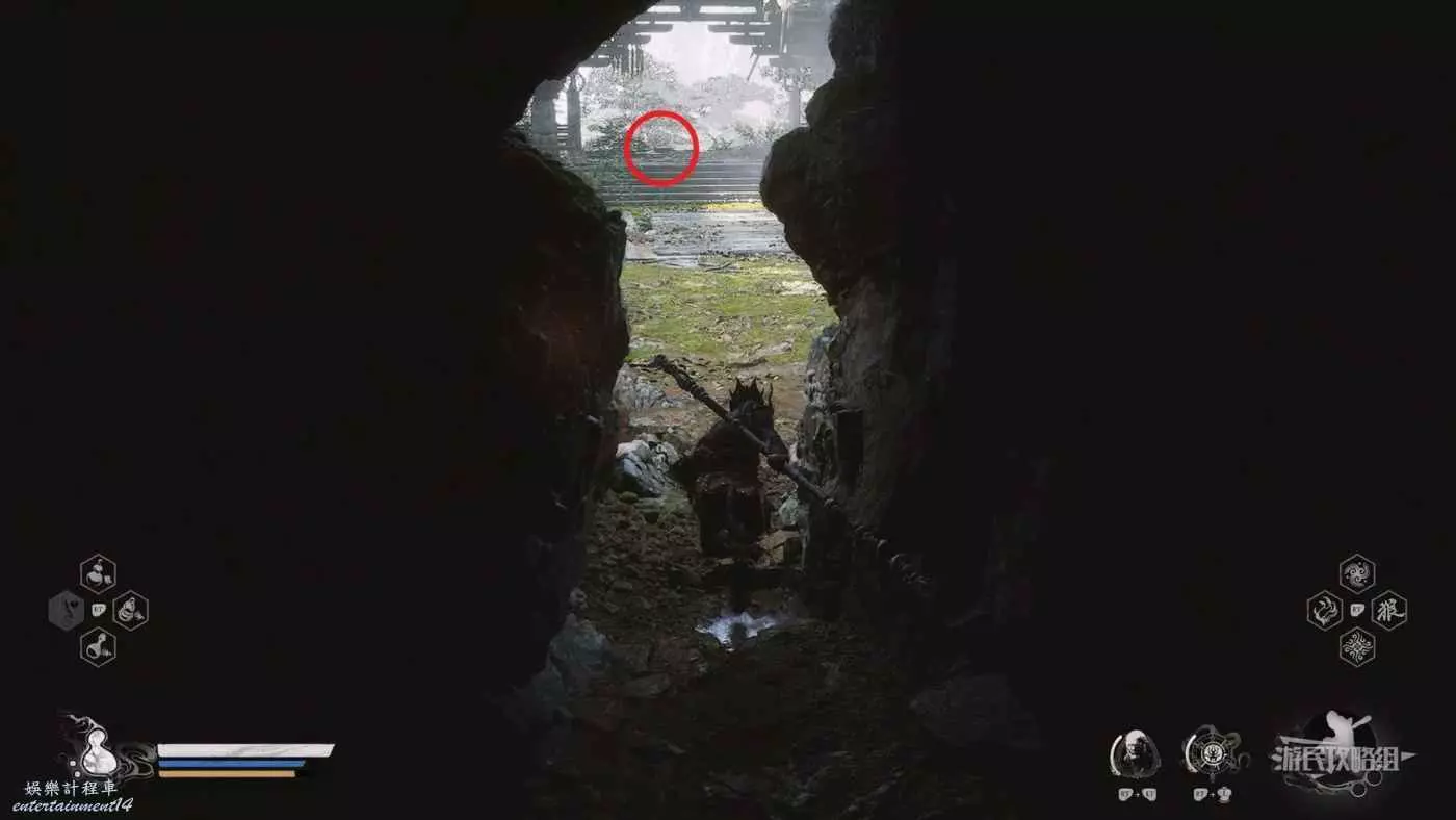 這是本作的第一個蒲團,從初始地點一路走過來就能看到,靠近會有互動提示。後續查漏補缺的話,從第一回【蒼狼林-林外】篝火出發,往回走進山洞。