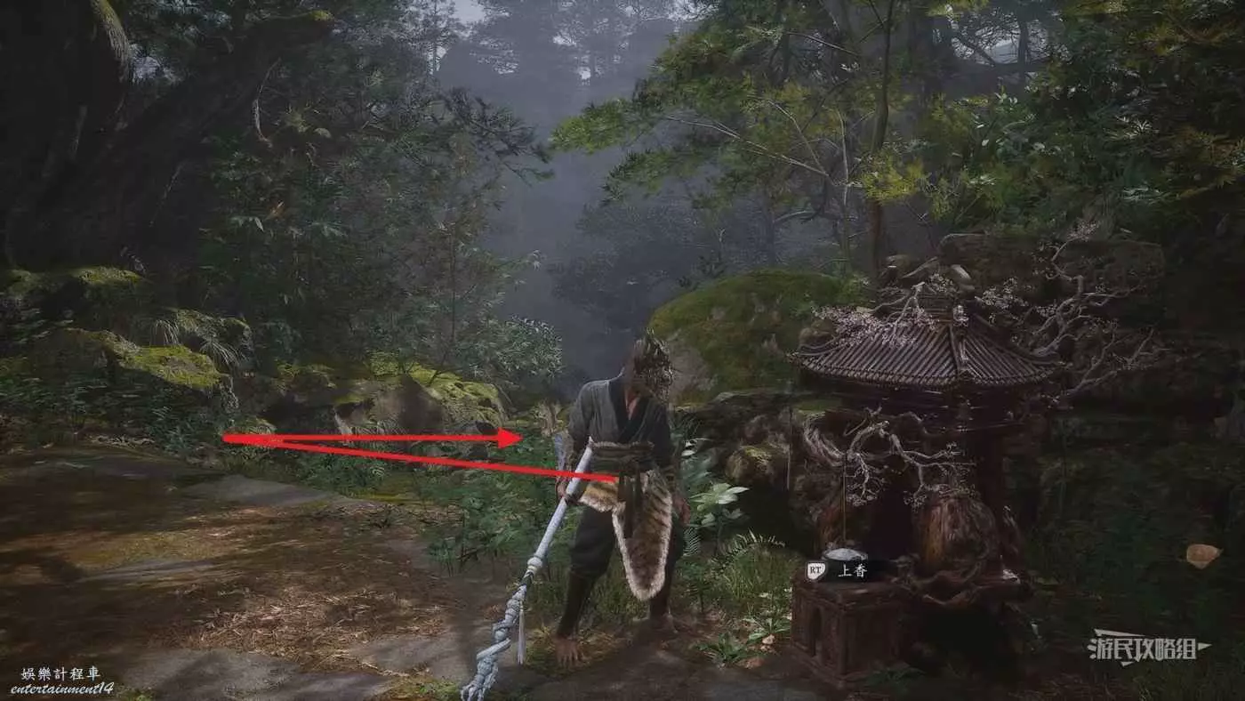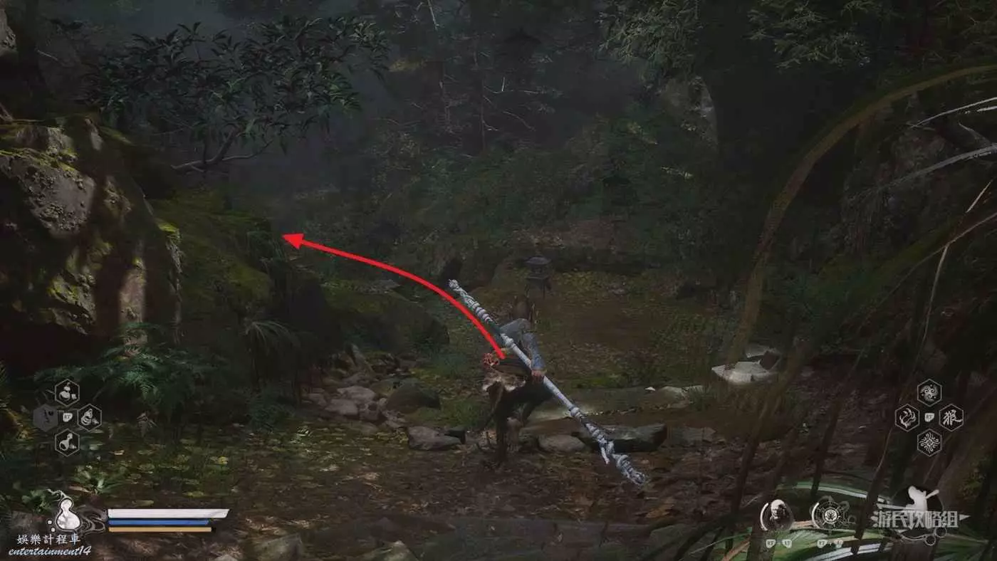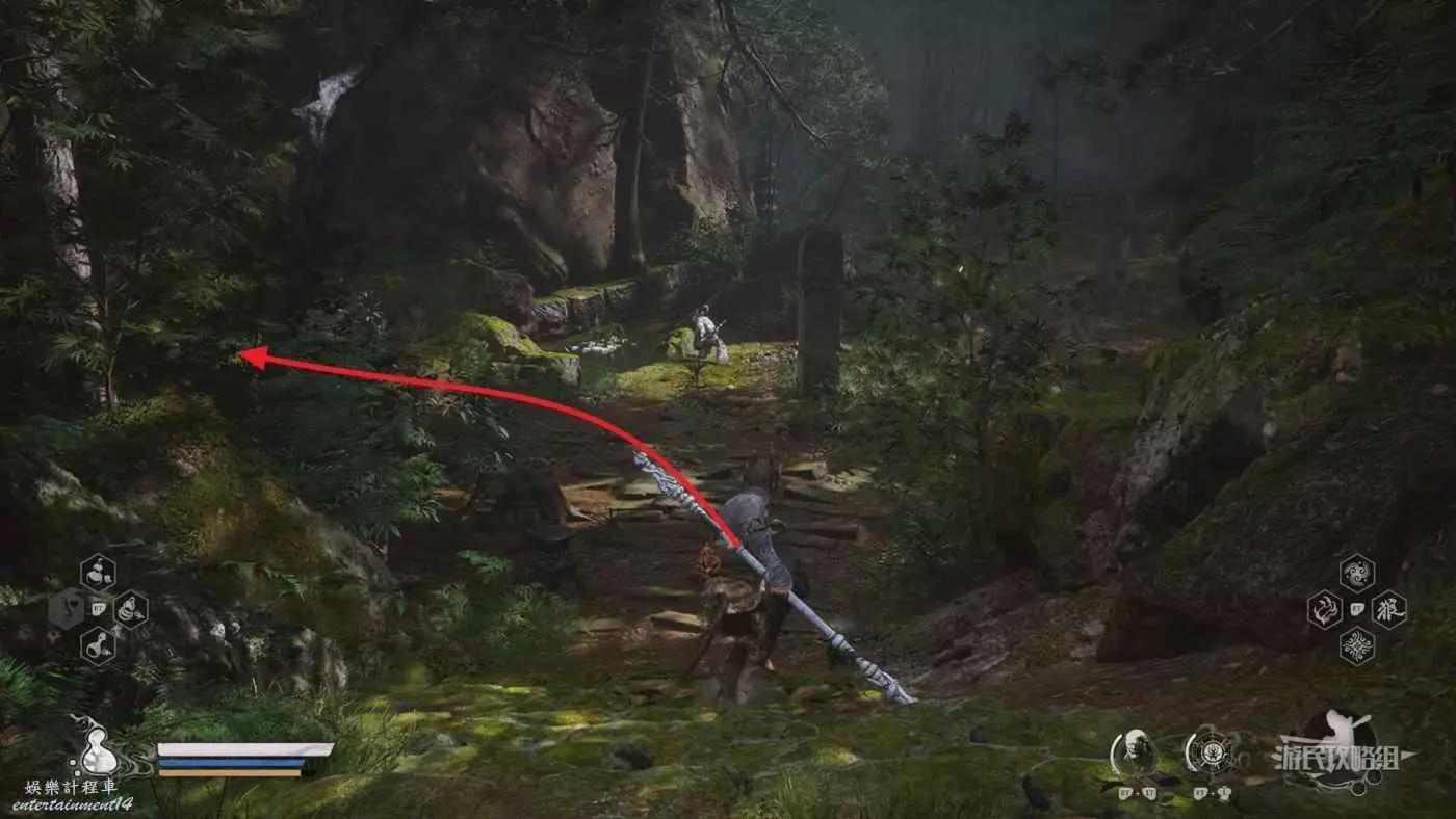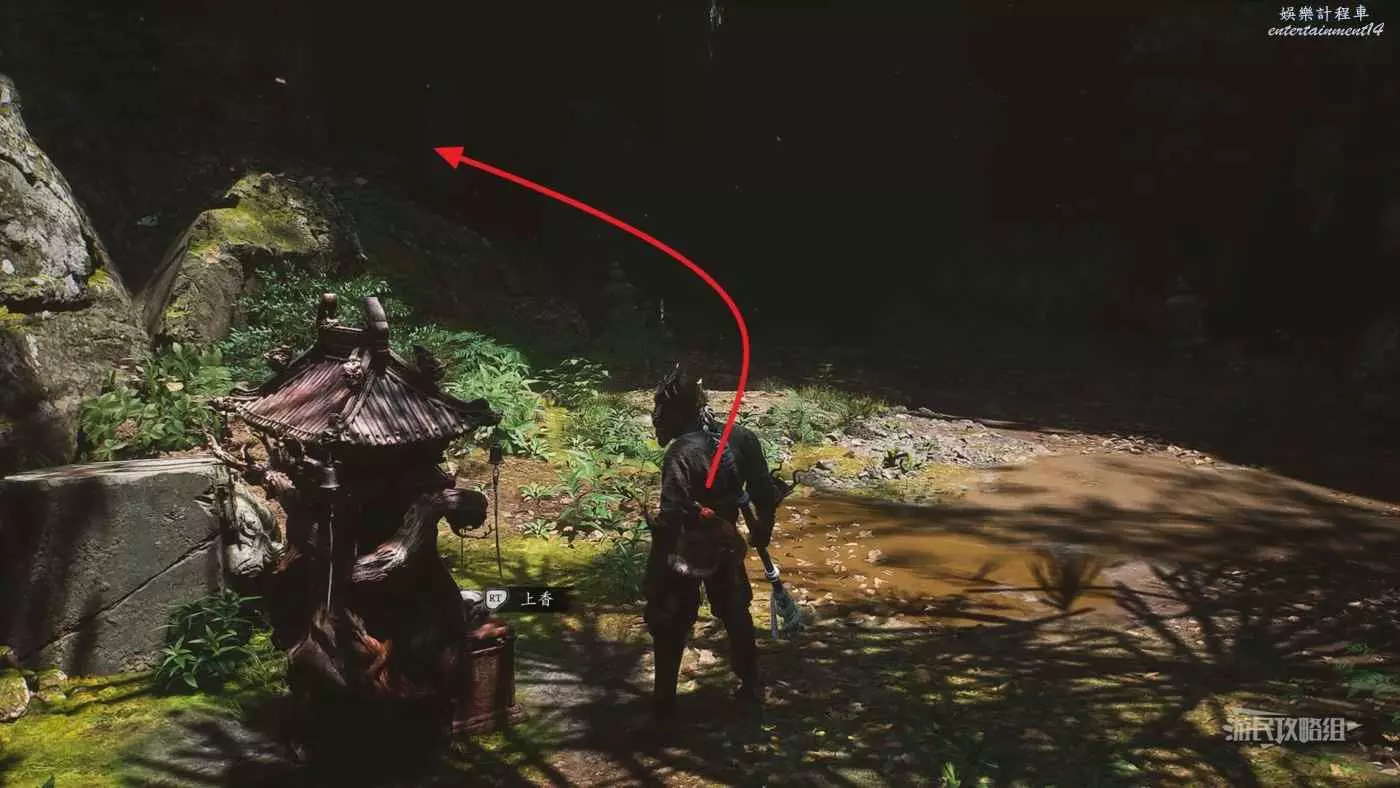 這是本作的第一個蒲團,從初始地點一路走過來就能看到,靠近會有互動提示。後續查漏補缺的話,從第一回【蒼狼林-林外】篝火出發,往回走進山洞。