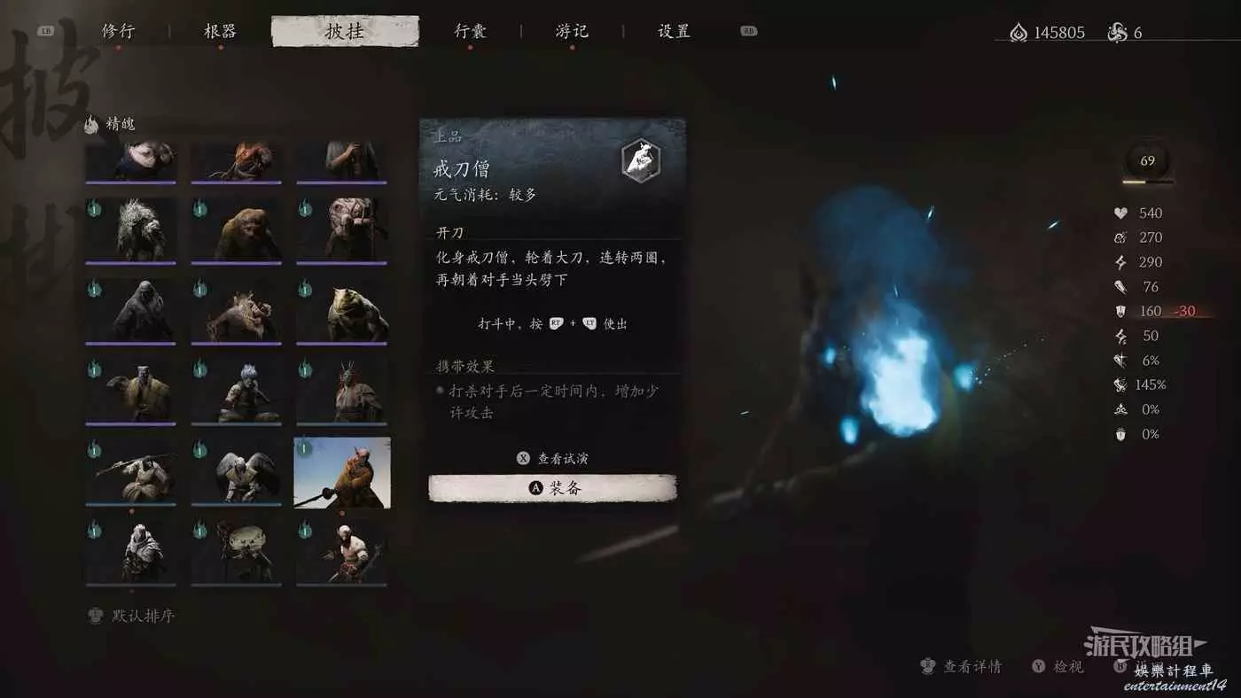 雕像中間有一隻發藍光的小怪,擊殺可以獲得精魄·戒刀僧。