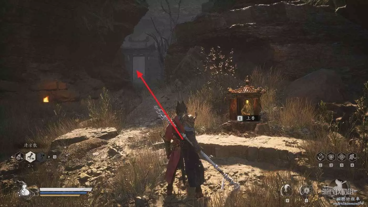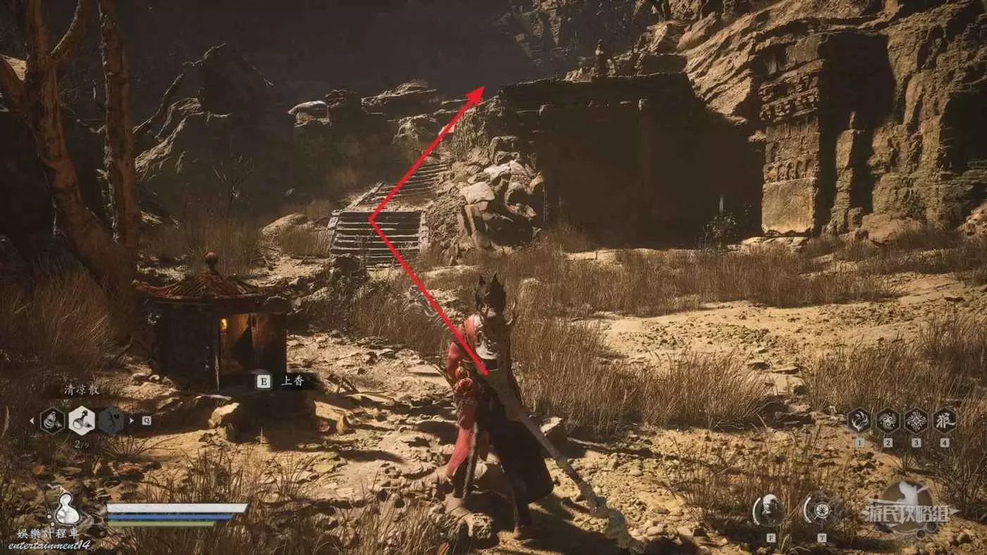 從第二回【黃風嶺-沙門村-不濟谷】土地廟出發,進入旁邊的山洞(BOSS沙大郎在山洞中)。