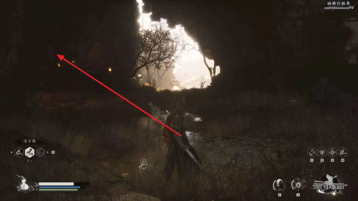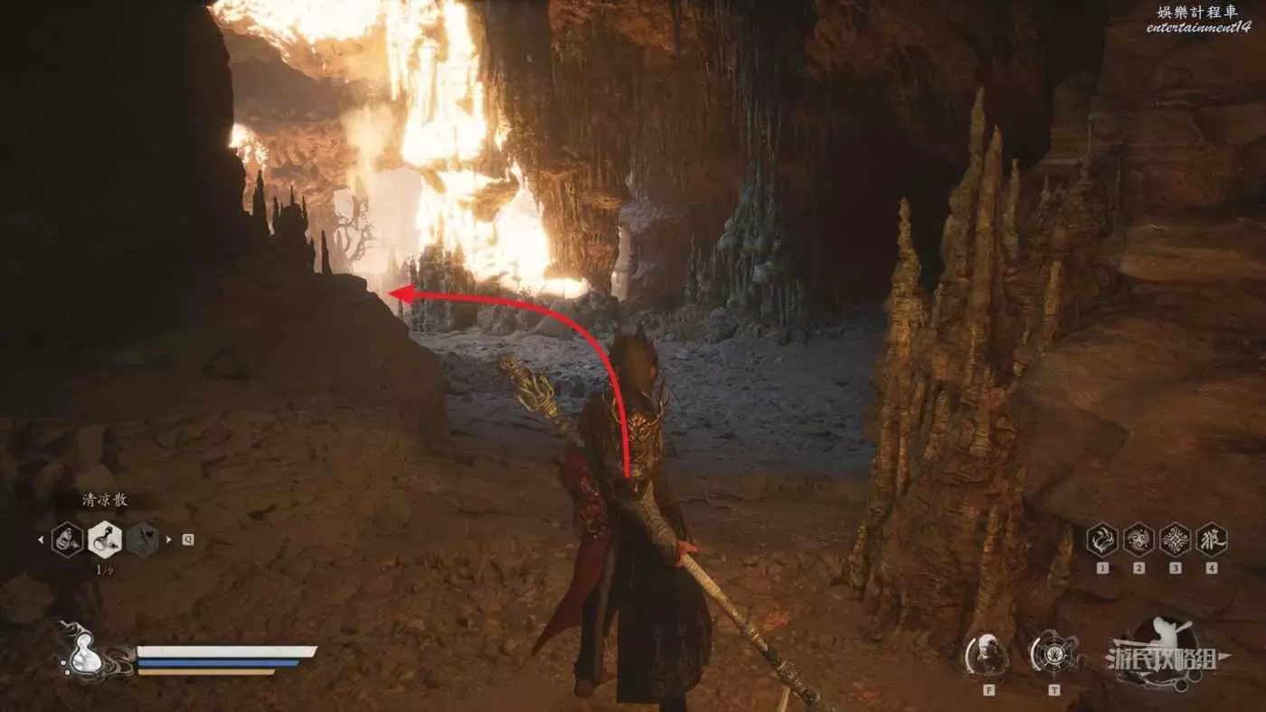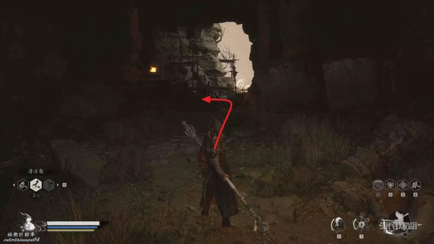 從第二回【黃風嶺-挾魂崖-藏風山凹】土地廟出發,面對土地廟往左往前進入前方山洞。
