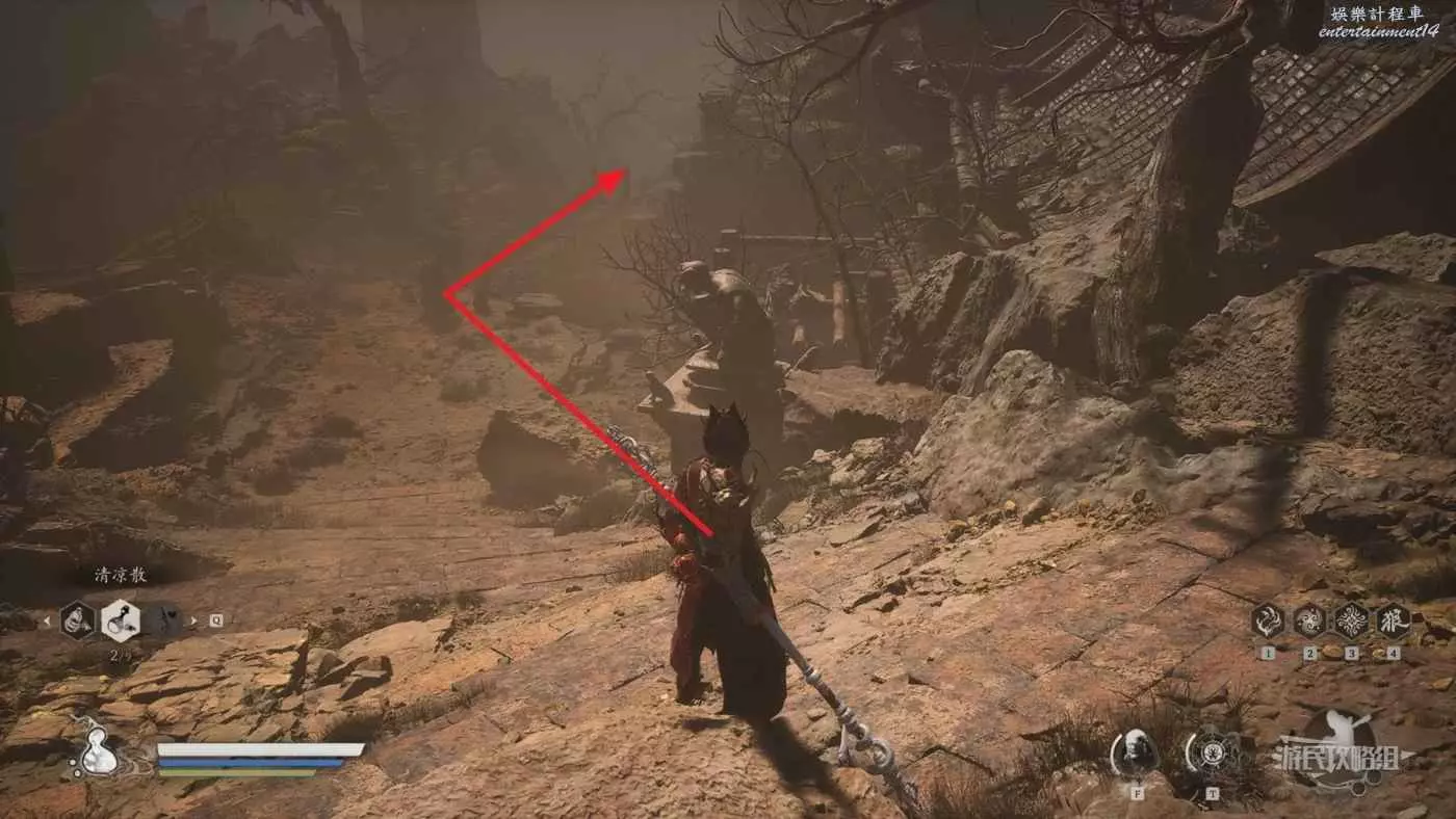 從第二回【黃風嶺-沙門村-村口】過橋往前走到正門即可看到冒藍光的鼠弩手,擊敗獲得精魄。