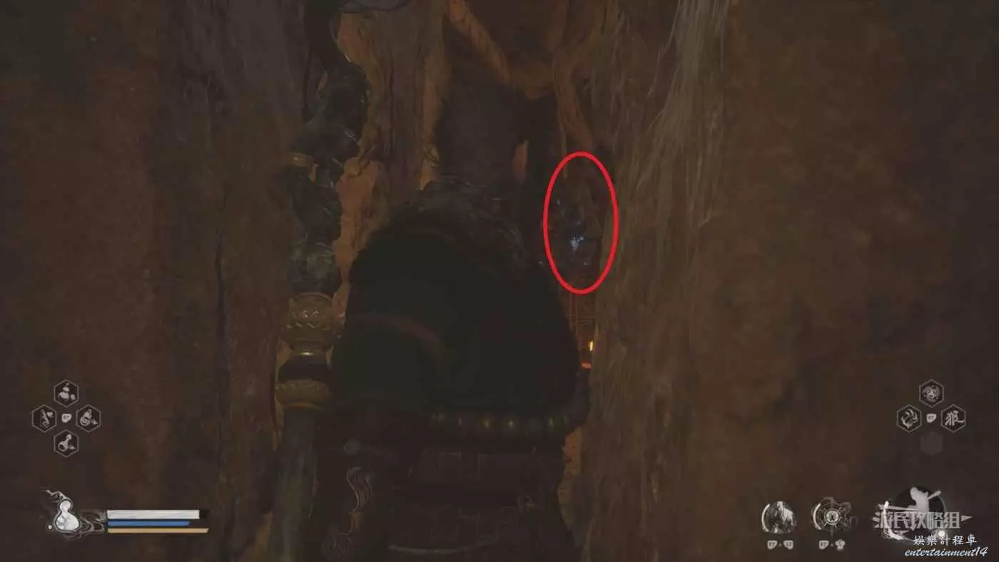 從沙大郎所在區域穿過前方木板,繼續沿著唯一的路往前走到頭,穿過裂縫即可看到冒藍光的疾蝠,擊敗獲得精魄。