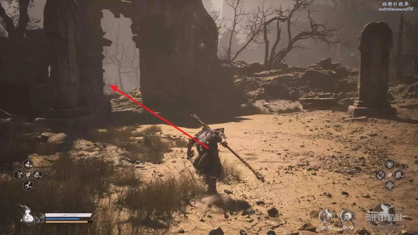 從第二回【黃風嶺-黃風陣-定風莊】土地廟出發,面對土地廟往左走過石橋。