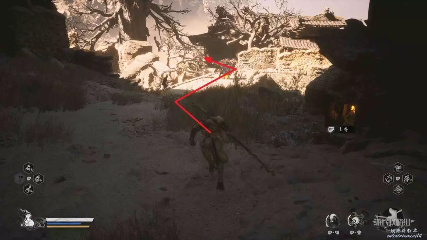 從第二回【黃風嶺-挾魂崖-碎石台】土地廟出發,進入土地廟正對面的村子。