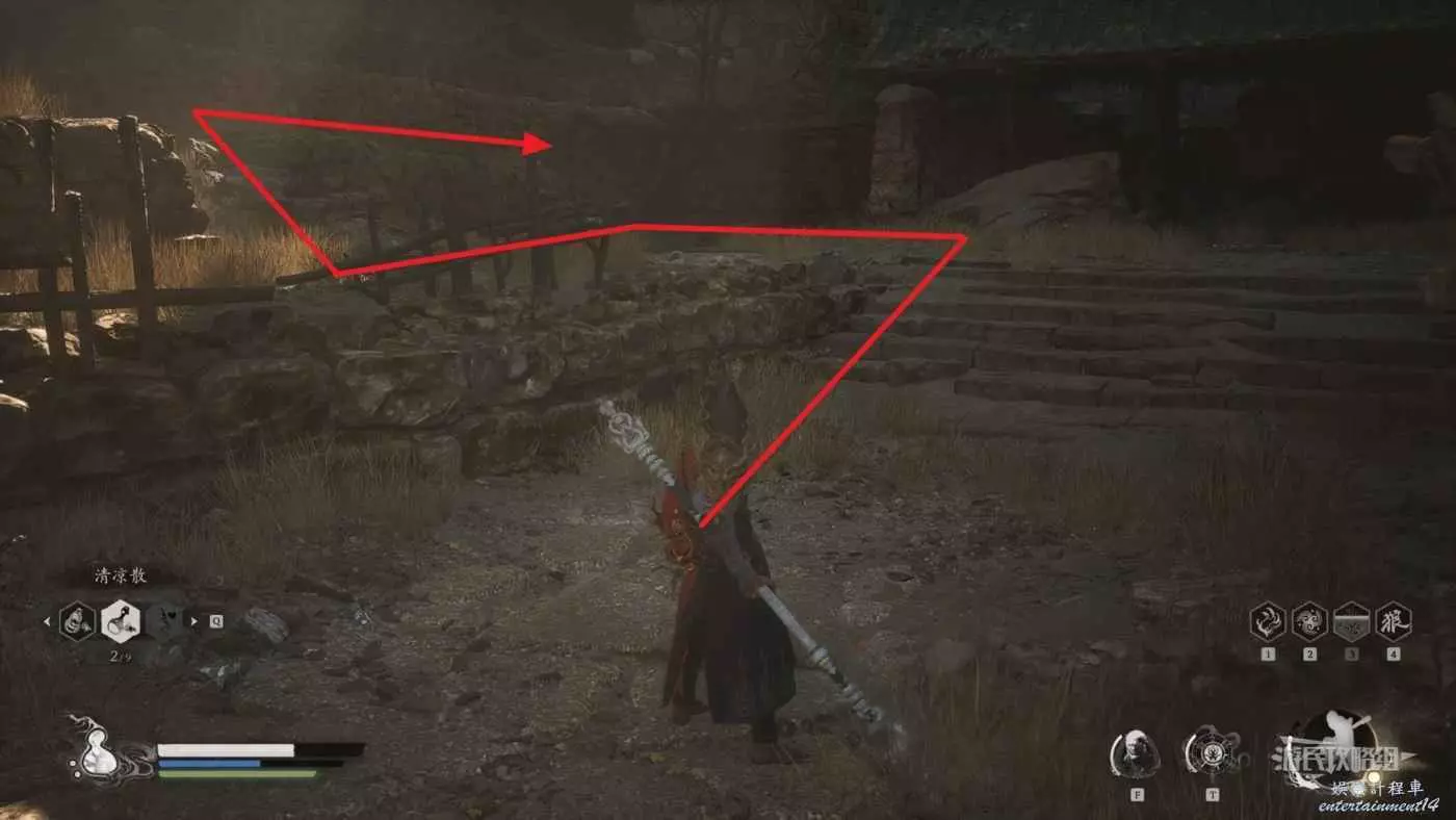 虎倀支線位置:首先在第二回【黃風陣-定風莊】的石橋上擊敗BOSS虎倀,獲得【撥浪鼓】;然後在【黃風陣-定風莊】的村內民宅前觸發劇情使用撥浪鼓;再前往【黃風陣-鎮風門】上方村子觸發井使用撥浪鼓;之後回到【沙門村-村口】中的BOSS地狼附近觸發劇情使用撥浪鼓;最後通過地狼所在區域角落裡的水井前往【沙門村-井底】,即可見到BOSS瘋虎。