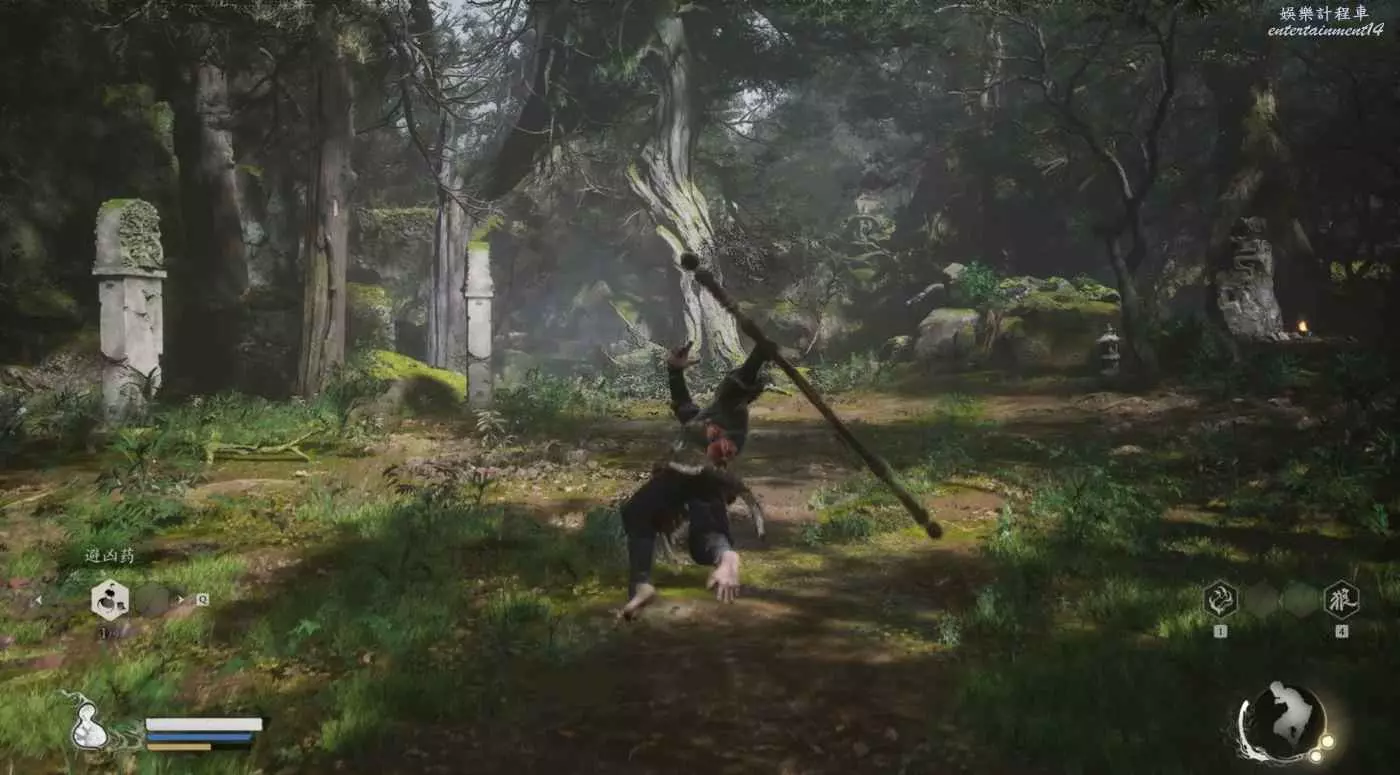 接下來就是非常無腦的左鍵平a直至最後一招跳斬,定身法緩精力條,變狼保命,甚至也用不到變狼。