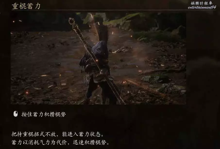 按住滑鼠右擊蓄力積攢棍勢。