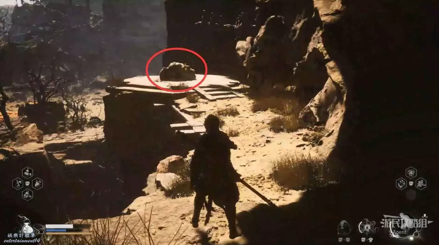 繼續往前探索陽光下的區域,就會抵達下一個土地廟了,先不過去。我們先回到“藏風山凹”土地廟,走左邊陰暗的路,一樣也能通往下一個土地廟。