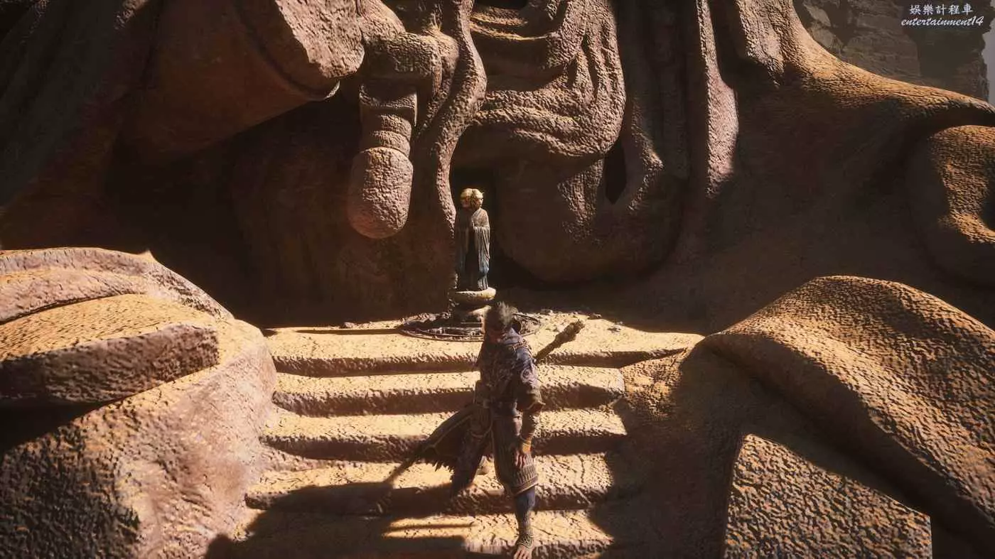 不過如果你打不過虎先鋒和黃風大聖?或許遊科是故意的——因為在第一章相對一本道的地圖之後,《黑神話:悟空》在第二章黃風寨做了大規模的環繞式箱庭,主線就出現了驚豔的隱藏地圖要素:虎寺暗藏隱藏通道,地下是遊戲中第一次開放煉丹系統(丹藥可以永久提升屬性)。