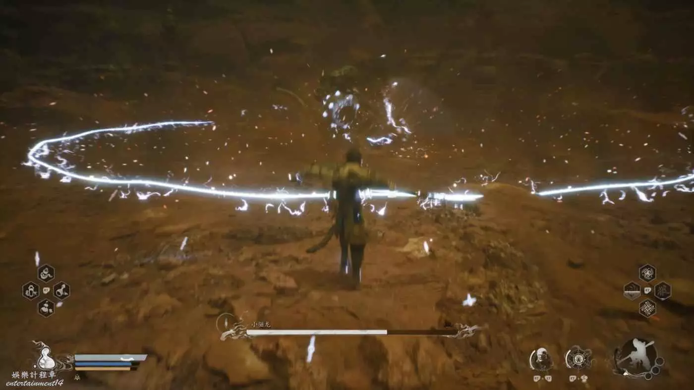 拿到龍鱗去往沙瀑,開起開啟隱藏地圖,進去打小驪龍——連續電環很蚌埠住,要麼跳+翻滾穿插用、要麼速度去石頭上(如果距離近),不然被電一下基本被電到死,除了連續電環這BOSS本身很弱。