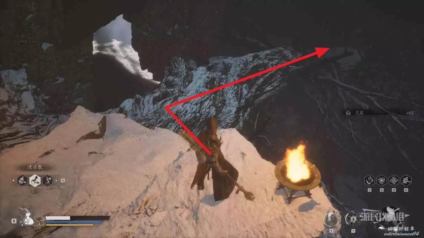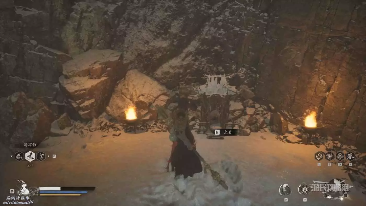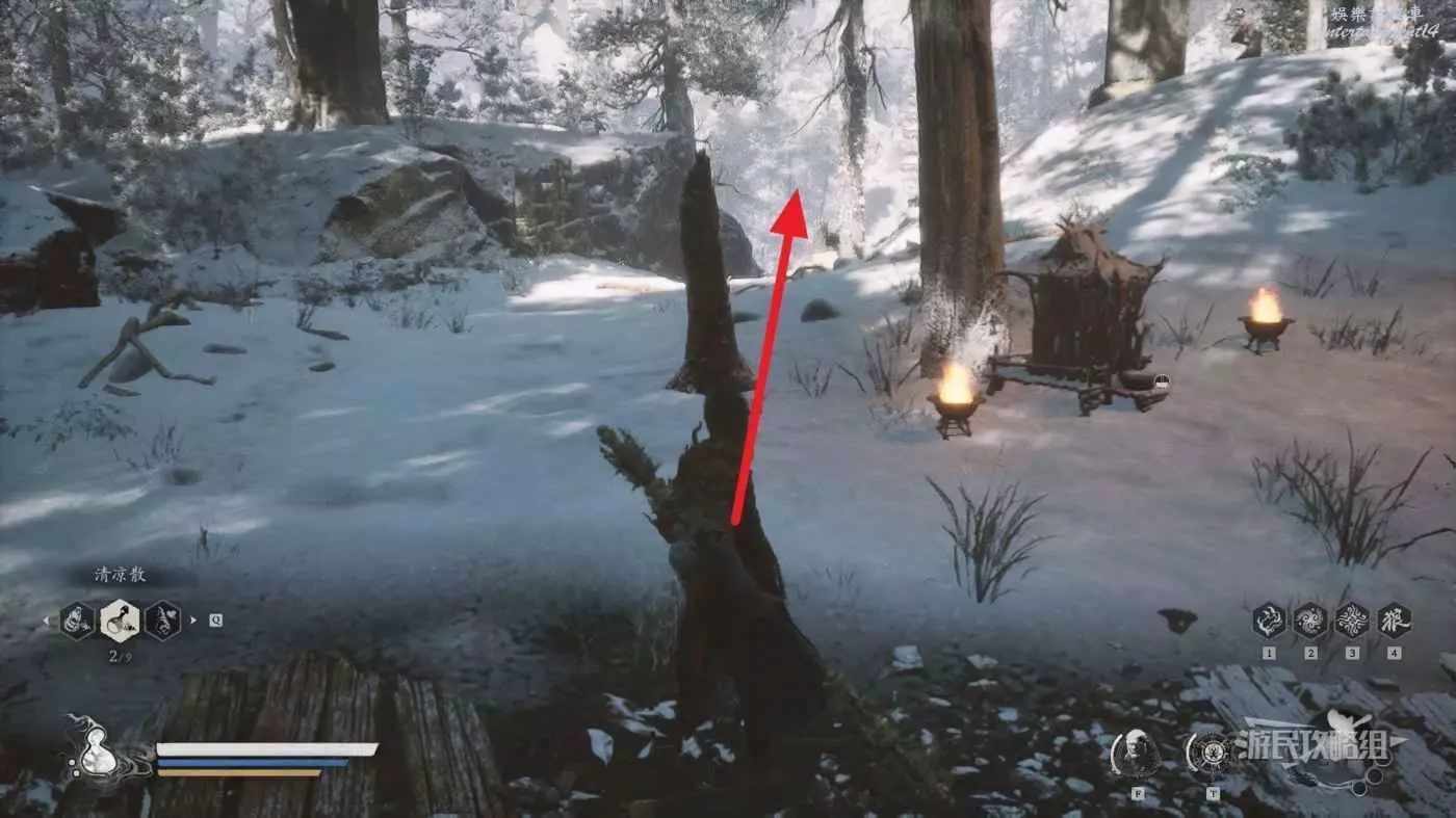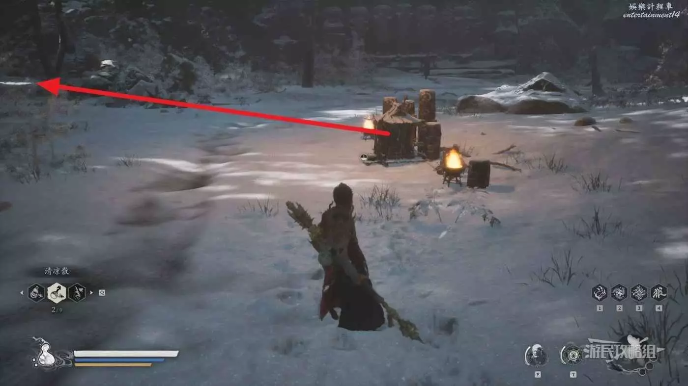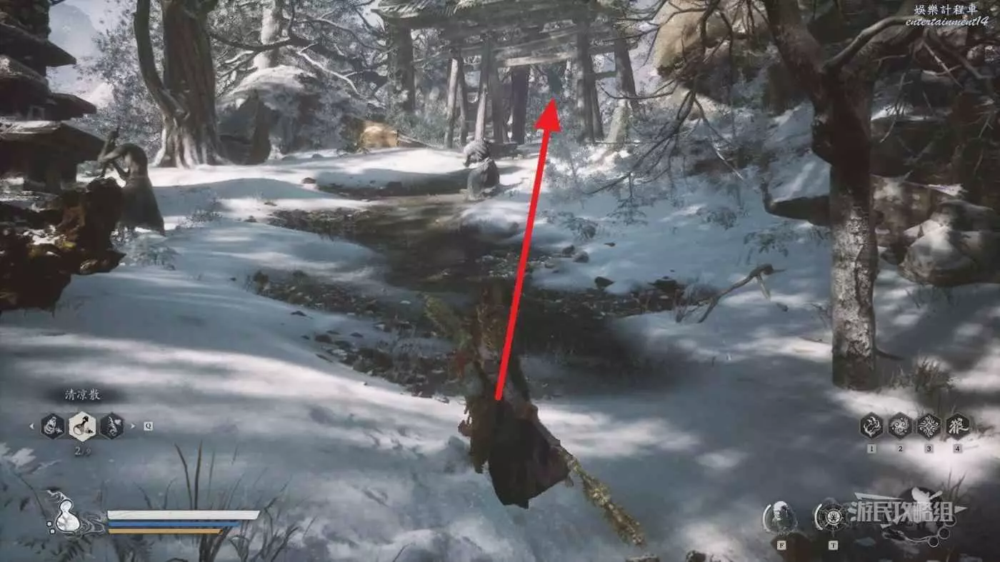 走到頭可以看到懸崖,懸崖邊有3個雪僵屍,其中2個是雕像,1個是真的,擊敗敵人之後從懸崖往下跳。
