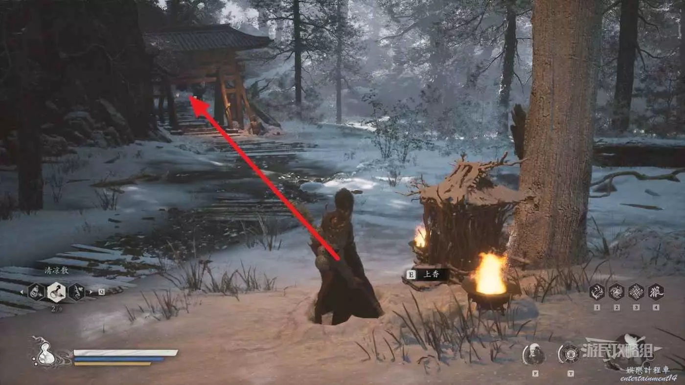 從【快活林】土地廟出發,穿過第一道門,這裡是靈狐支線的接取位置。