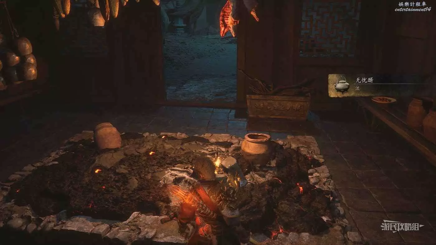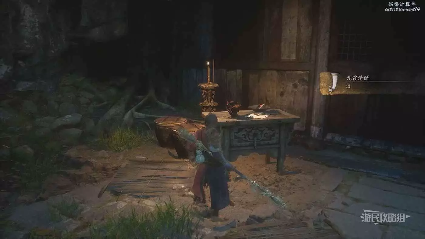 走到頭可以看到有一件小房子,酒就在小房子前的桌子上,靠近會顯示互動鍵。