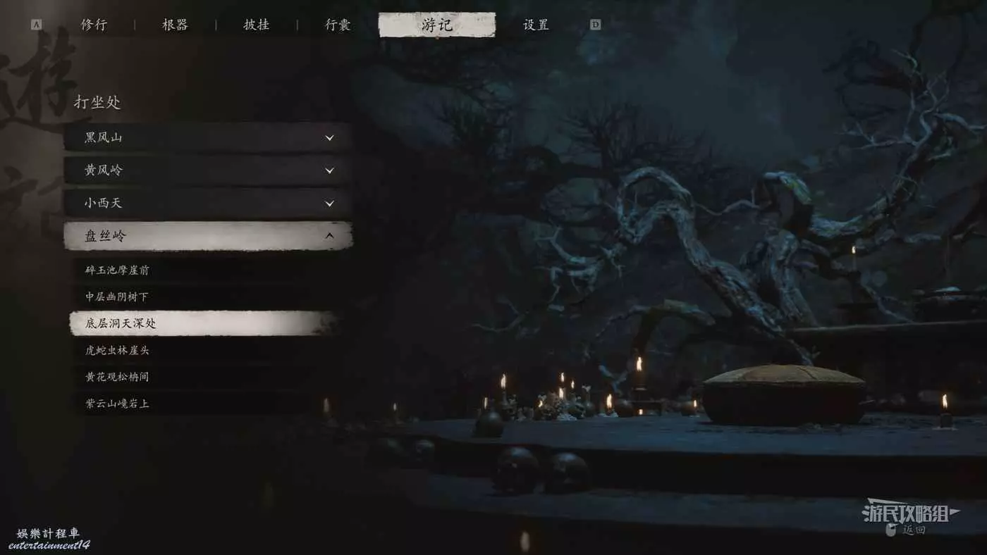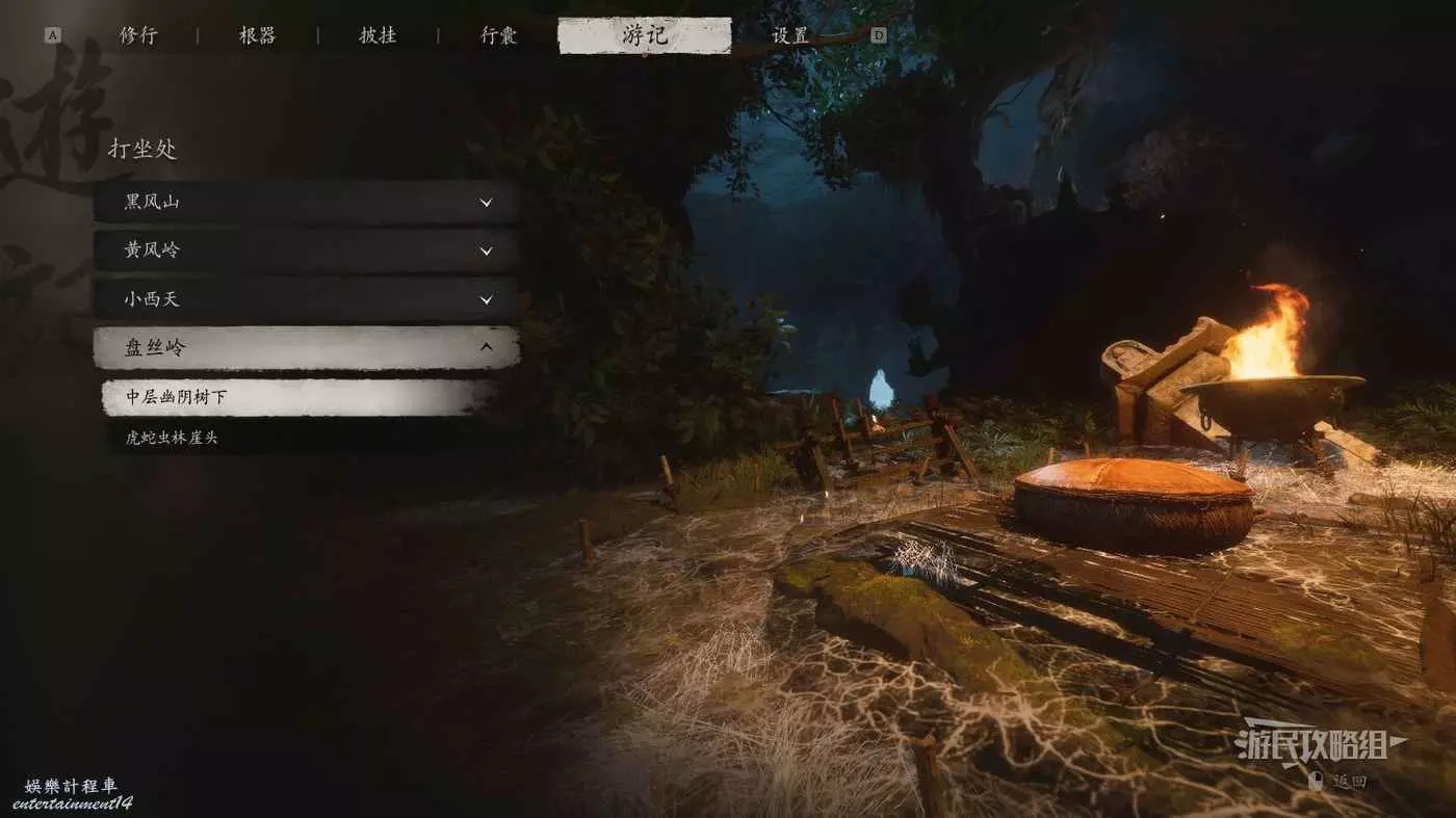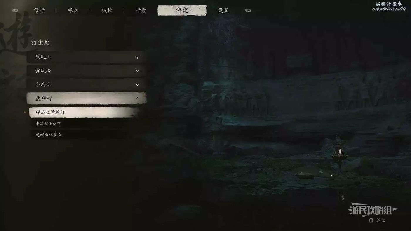 從第四回【盤絲洞-底層】土地廟出發,面對土地廟往左走,穿過吊著利爪繭區域,然後往左側岩壁上看,有一個裂縫,鑽入裂縫即可找到蒲團。