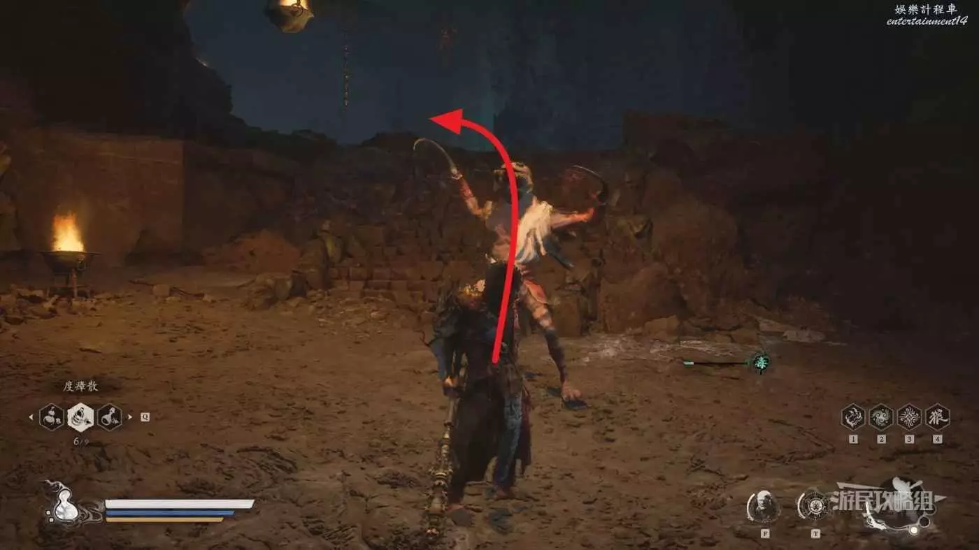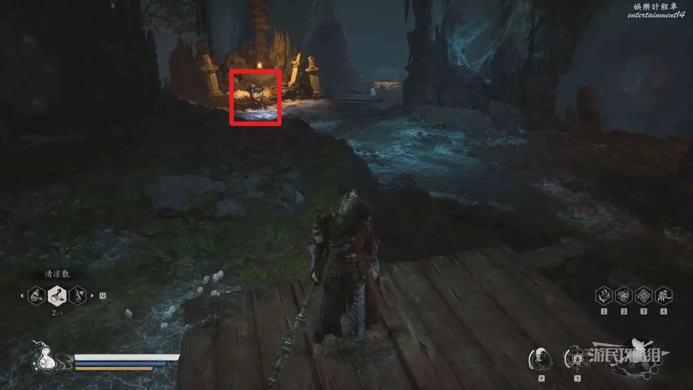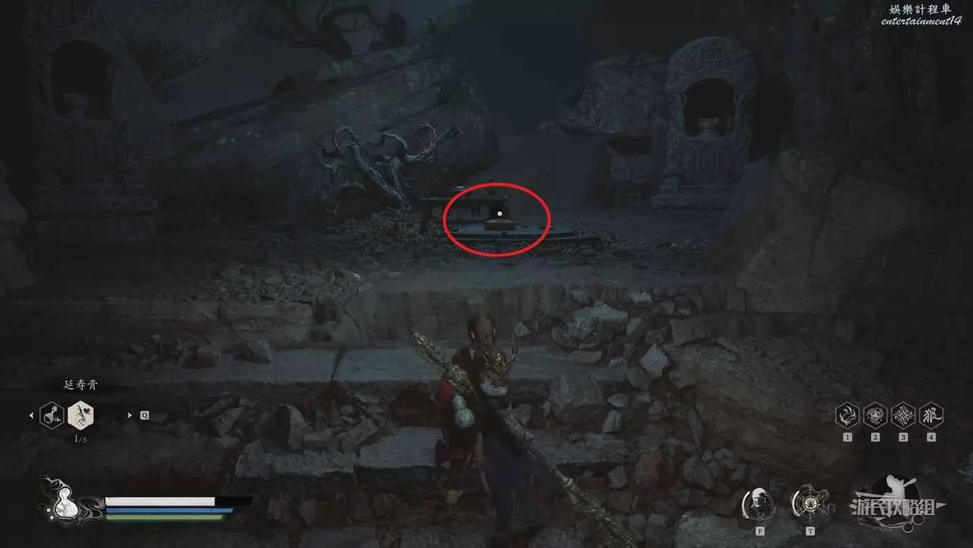 從第四回【盤絲洞-上層】土地廟出發,走土地廟正後方的斜坡往上,然後沿路往下,貼著右側岩壁走。