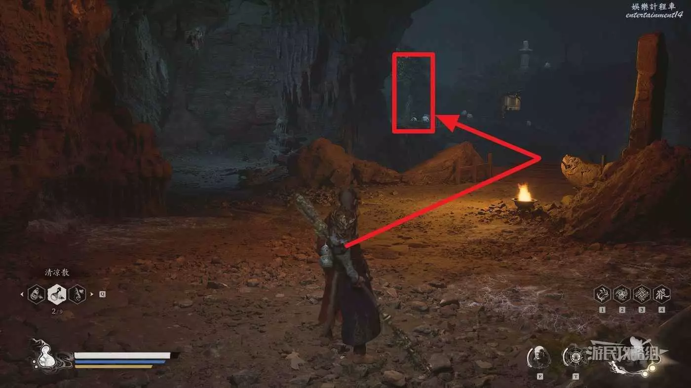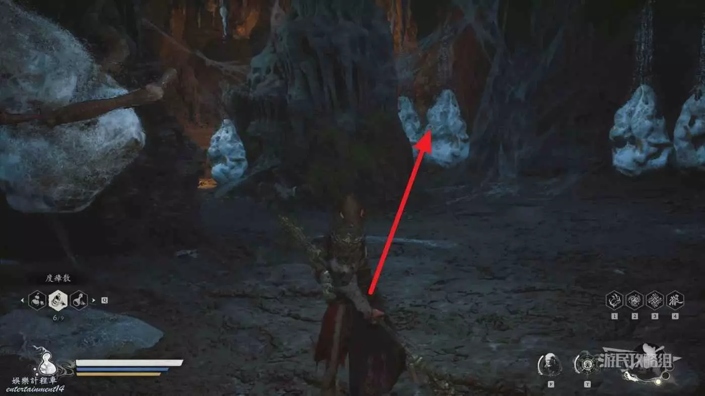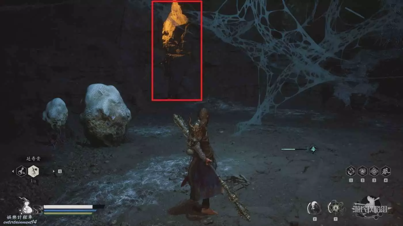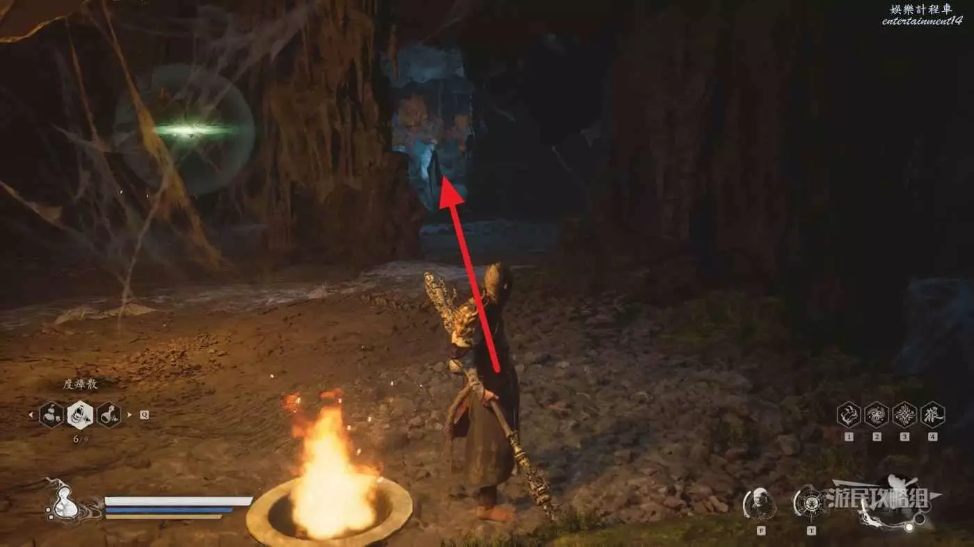 穿過繭所在區域後,繼續沿路往右走,進洞。