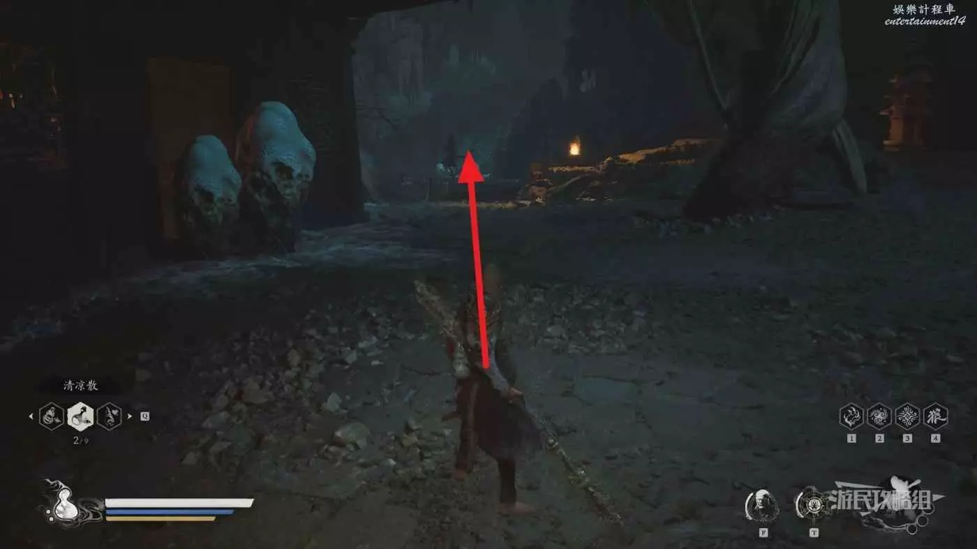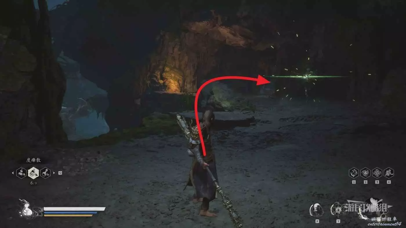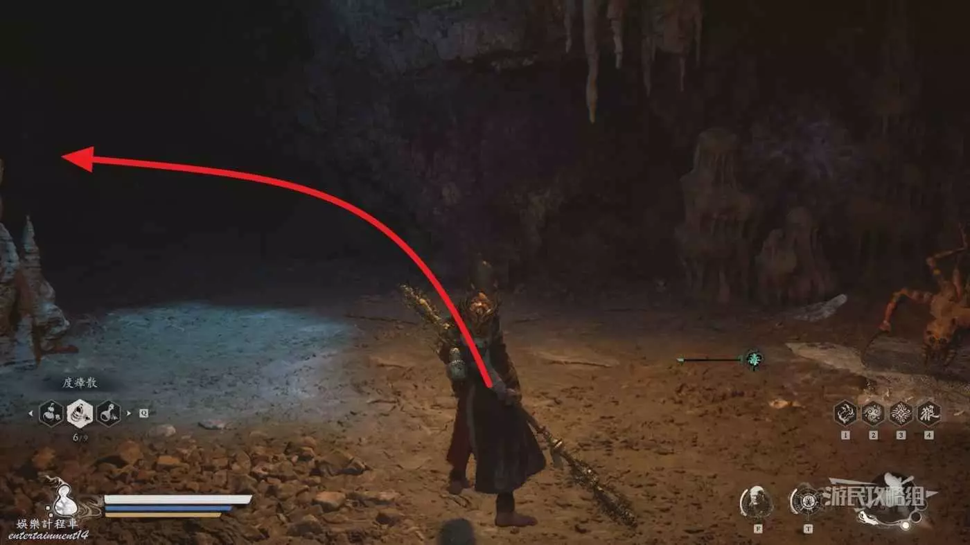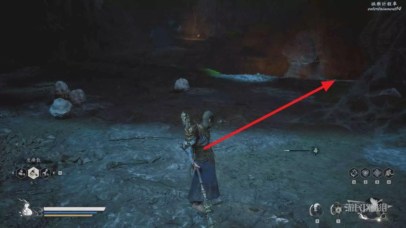 穿過繭所在區域後,繼續沿路往右走,進洞。