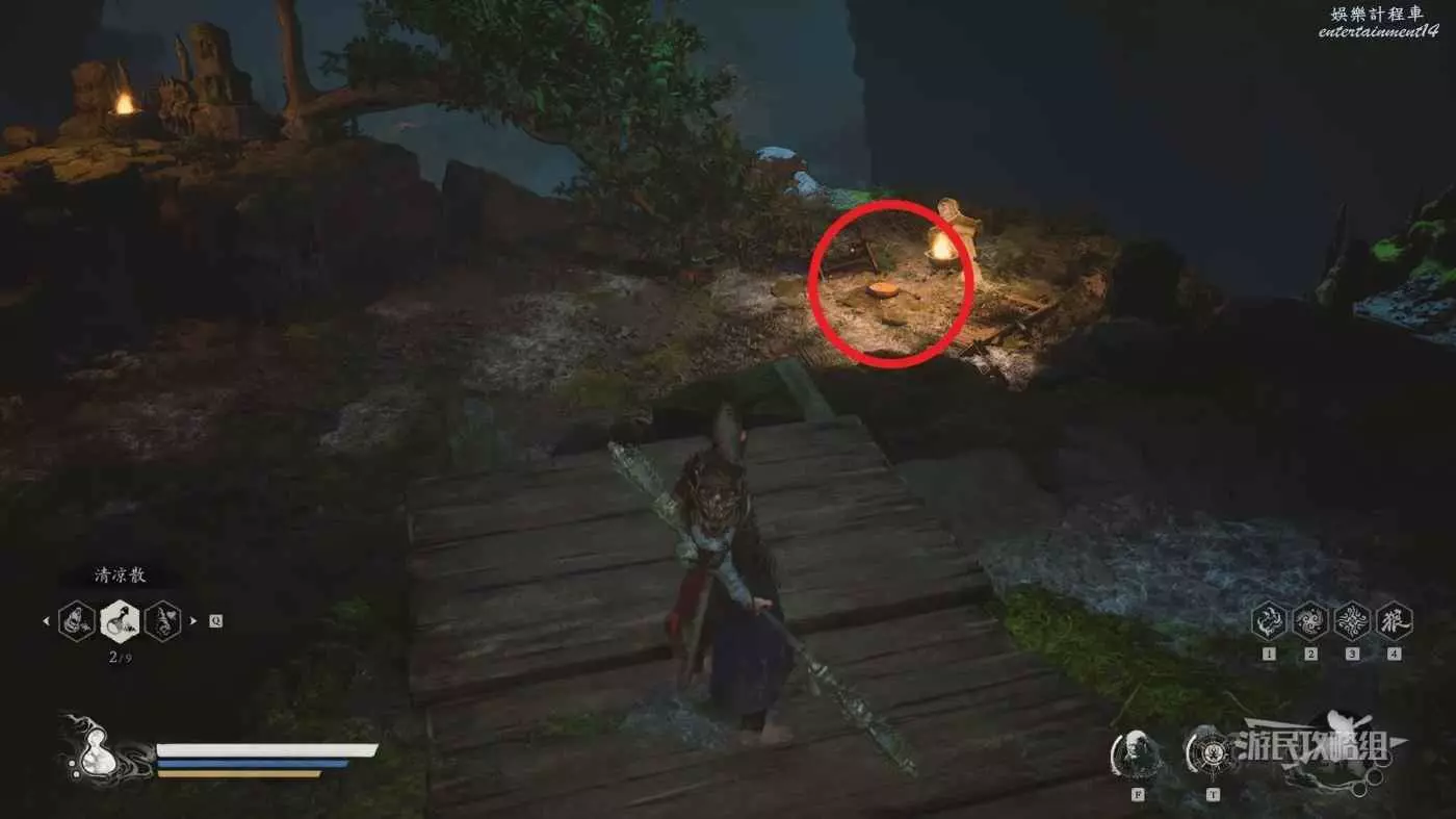 ※如果已經開了【中層】土地廟,可以直接從中層土地廟出發往正對面懸崖方向走就能看到蒲團。