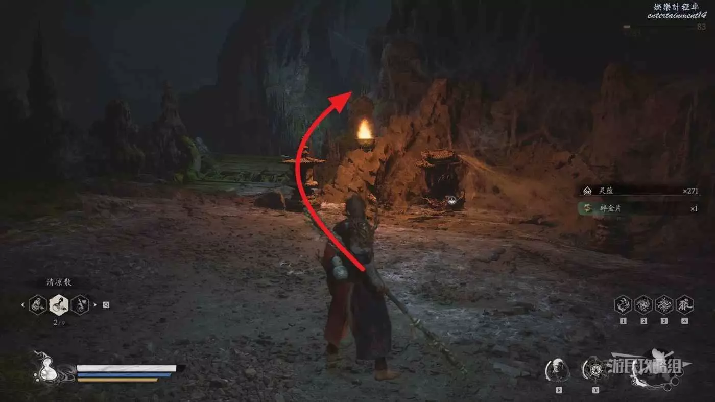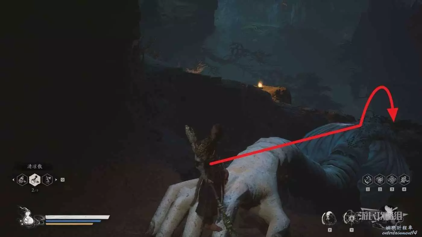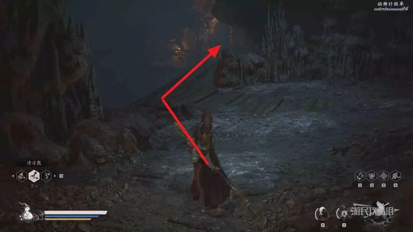 過橋後,沿著唯一的路往前直走,穿過第二個獨木橋,注意第二個獨木橋上方會出現許多【利爪繭】,建議走到橋邊後用【聚形散氣】快速通過,以免被打墜崖。
