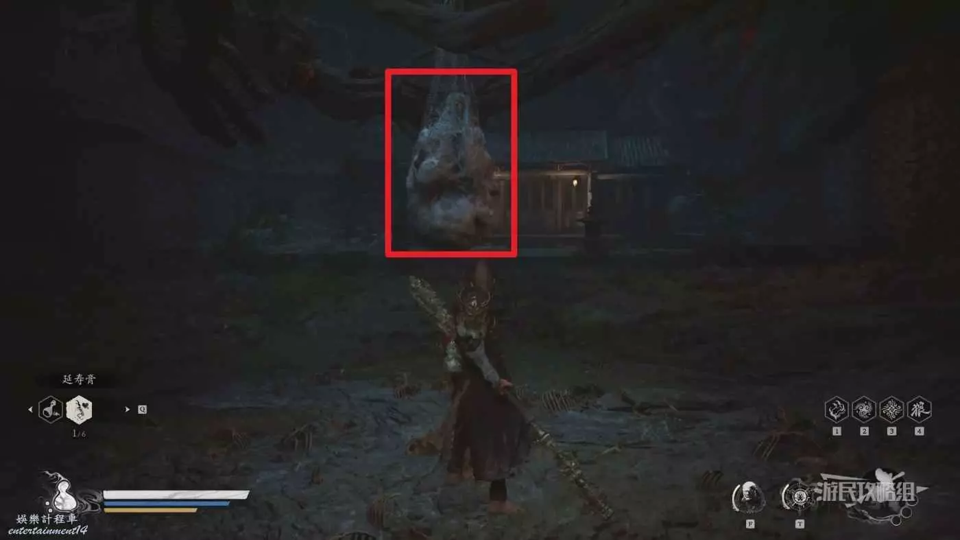 一路穿過頂上吊著的利爪繭,到達最前方有一個很大的繭,敲一下會觸發與【怪繭】的BOSS戰,黑手道人就在繭裡。