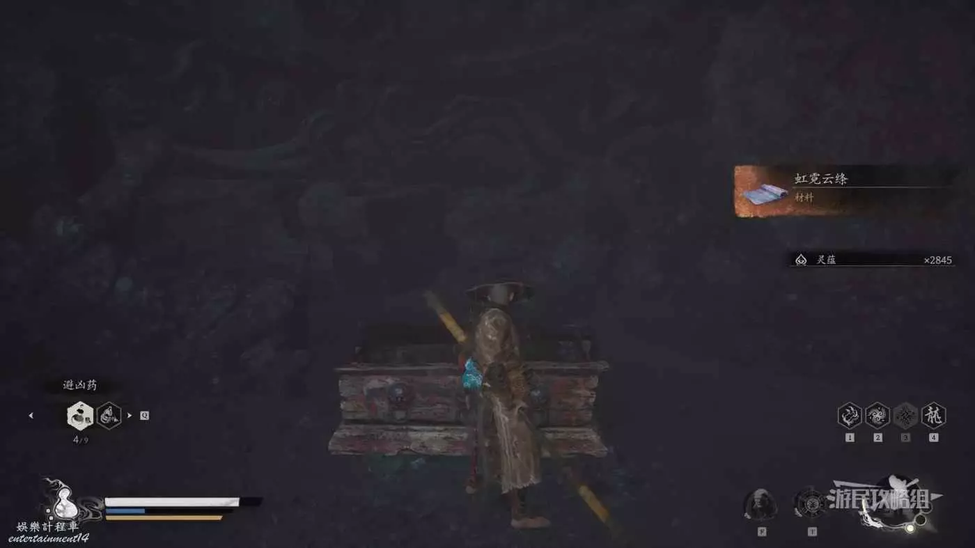擊殺可以獲得地羅刹精魄。旁邊的棺材寶箱裡打開即可獲得材料【虹霓雲絛】。