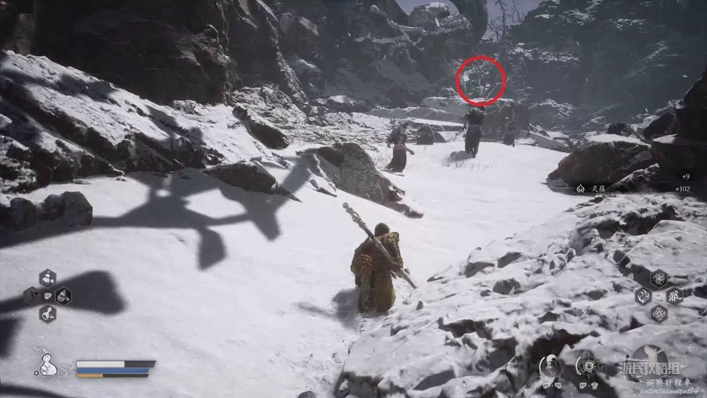 黑神話 悟空 隼居士精魄位置說明 25 8 月 2024-08-25 廣告 作者:瑞破受氣包 來源:遊民星空 位置及路線 從第三回【小西天-浮屠界-安身寺】土地廟觸發,沿著樓梯往下走,下樓梯後右轉,貼著岩壁往前走。 一直往前走,路上可以看到遠處有個觸手型的敵人,朝著這個敵人的方向前進。 在觸手敵人後方有一條路,路上有許多雕像。沿著這條路往前走。 參考下圖,沿路走到下圖所示位置附近時,前方大石頭上(紅圈位置)會出現一隻隼居士。 擊敗隼居士即可獲得精魄。