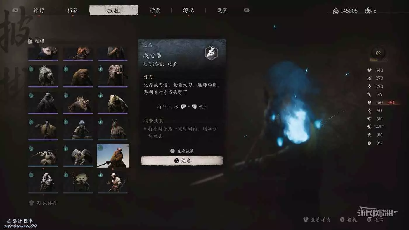 黑神話 悟空 戒刀僧精魄位置一覽 25 8 月 2024-08-25 廣告 作者:瑞破受氣包 來源:遊民星空 位置及獲取方法 從第三回【小西天-浮屠界-經筒外】土地廟往BOSS【魔將·妙音】所在位置的橋走,到懸崖邊右轉可以看到前方岩壁上凸出了一些大石頭,這些石頭是可以踩著往下跳的。沿著石頭往下跳,按照下圖箭頭方向前進。 按照上圖箭頭往下跳兩層後,應該落在一條山路上,然後按照上圖箭頭表示方向前進,可以看到前方有一堆雕像站在路邊。 雕像中間有一隻發藍光的小怪,擊殺可以獲得精魄·戒刀僧。