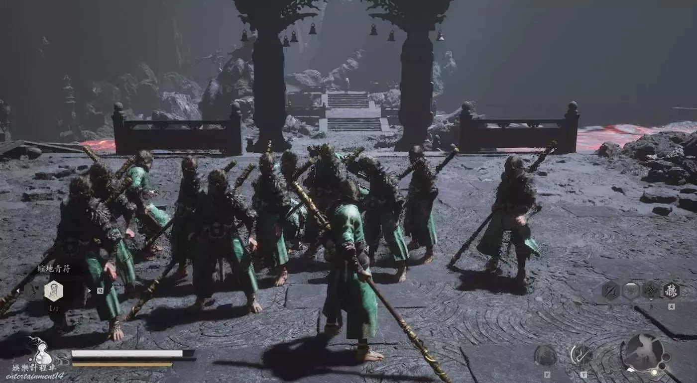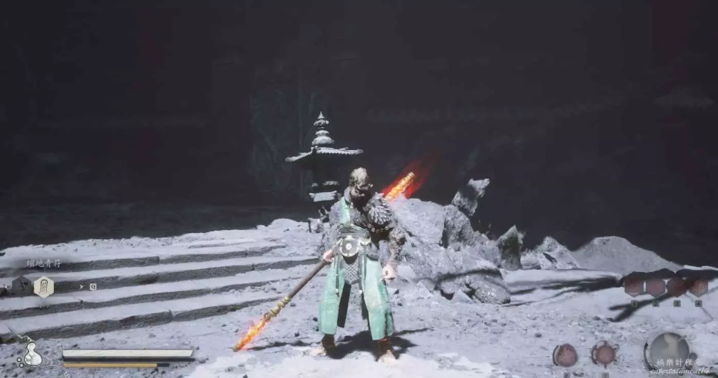 開局後直接蓄力奔跑拉開與BOSS的距離,當蓄力滿了,靠近BOSS給他一棒子,然後接2-3個輕棍,繼續拉開,全程閃避不閃開也沒事,能閃開當然更好,不強求,只要BOSS沖過來,不管蓄了幾個棍勢,都要敲下去,這樣能很好的打斷BOSS輸出節奏,他的攻擊不可能比我們回血快的。