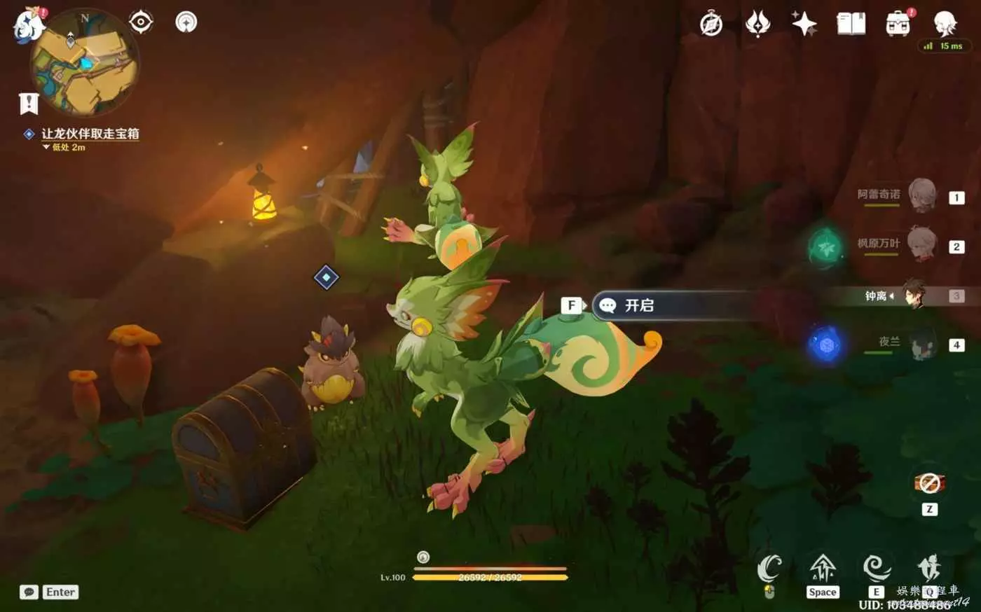 右轉後可以看到一隻匿葉龍,在匿葉龍的身後有一個華麗寶箱,但對方不肯讓路