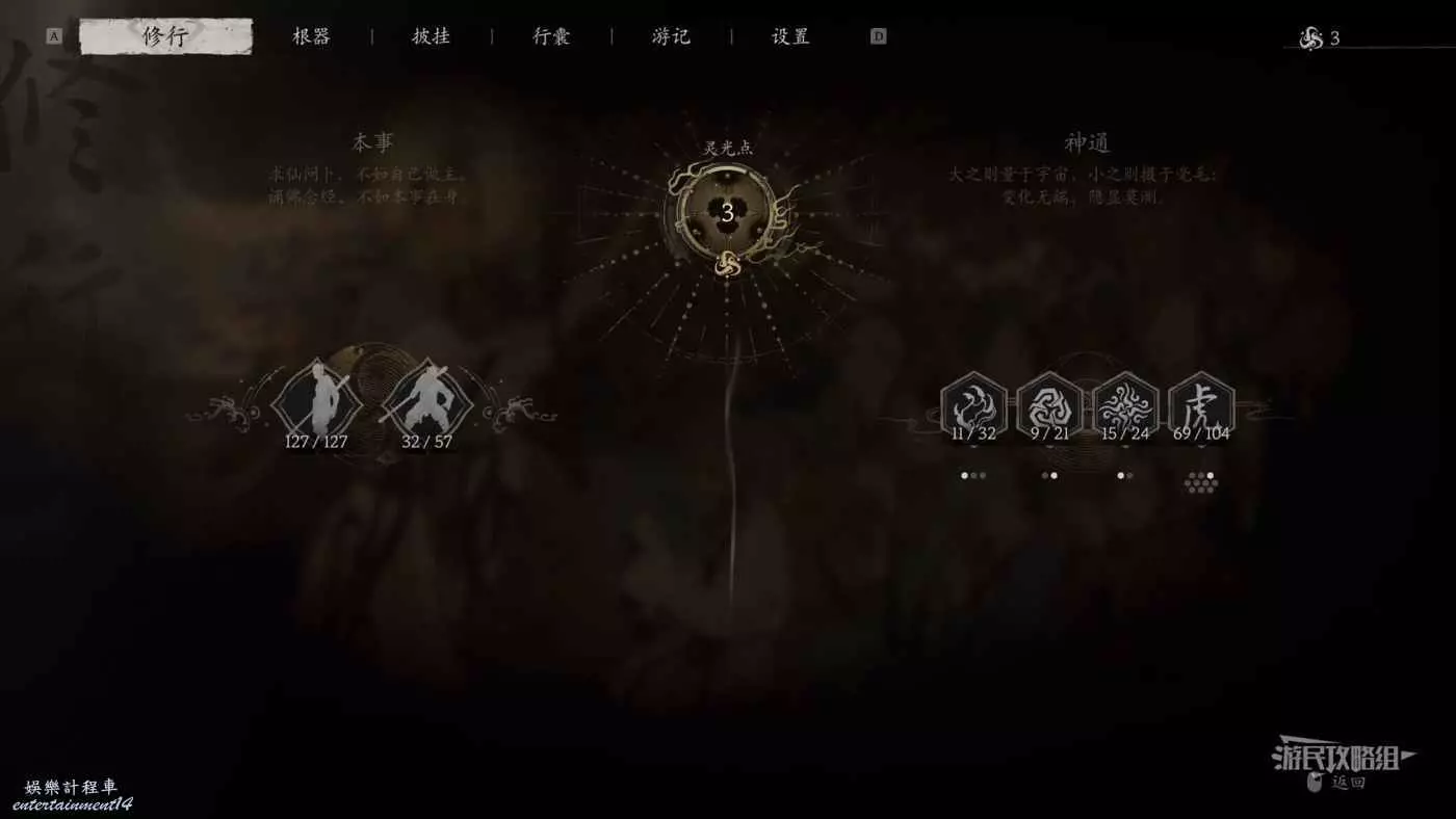 注意:實際上在三周目離開【火焰山-隱·璧水洞】之後就可以前往【小西天-浮屠界-浮屠塔】觸發劇情進入【隱·梅山】了,因此最早能把六根點滿的時機就是三周目結束第五章並進入第六章(最後一根是擊敗第五章最終BOSS獲得的)。
