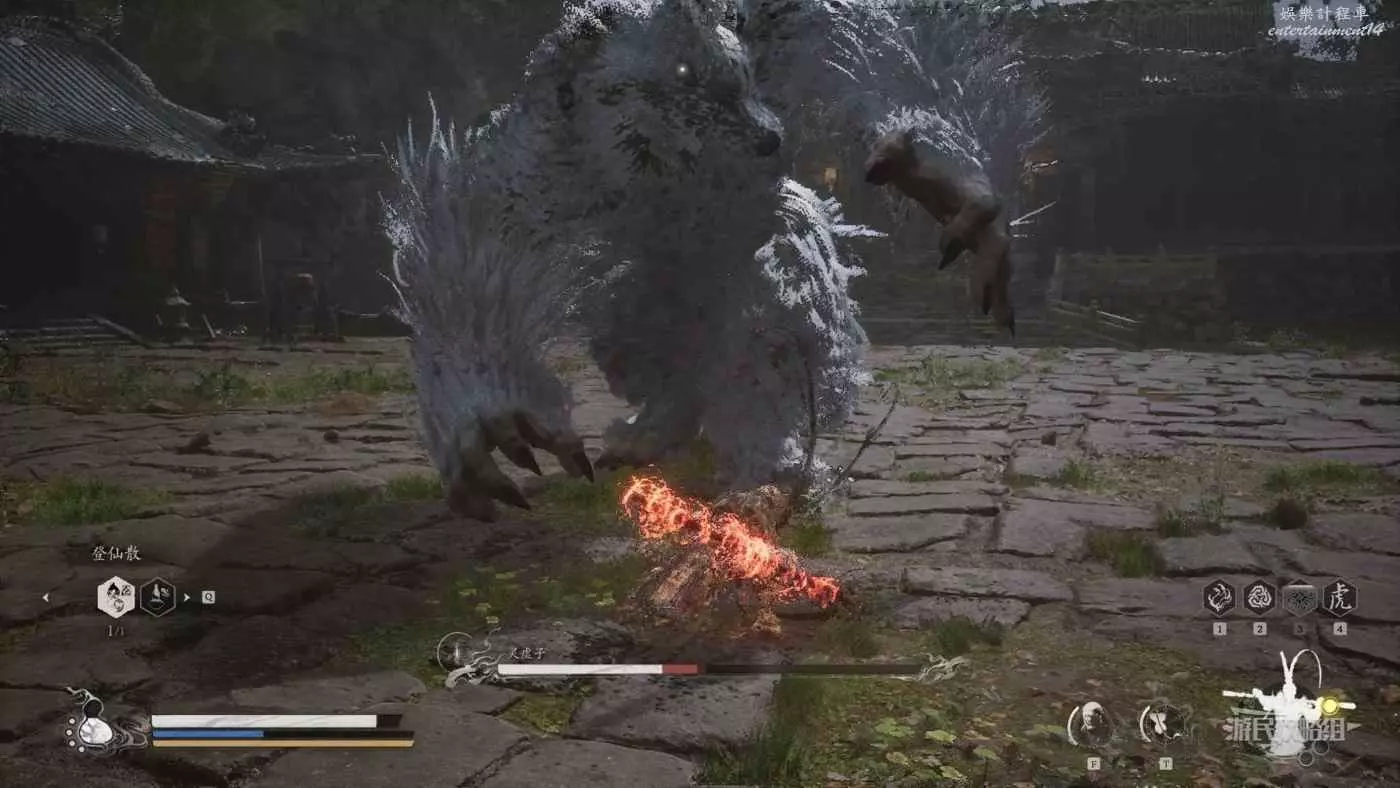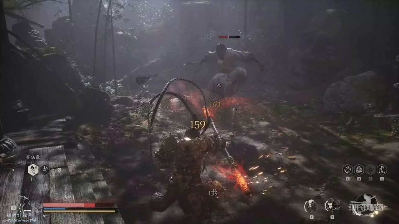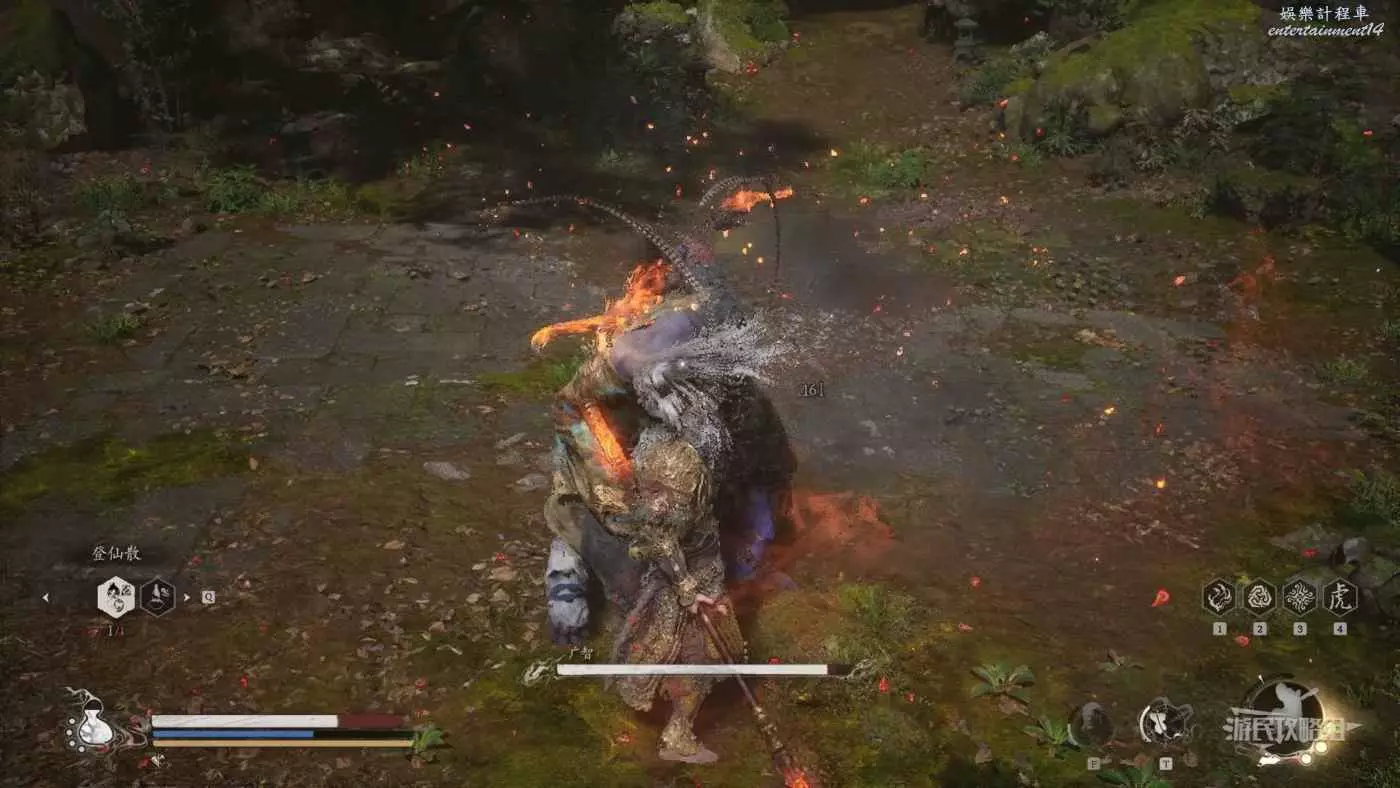 額外棍勢條蓄滿後重擊,開啟大聖模式時的傷害會高很多。參考下圖打靈虛子時的血條表現。