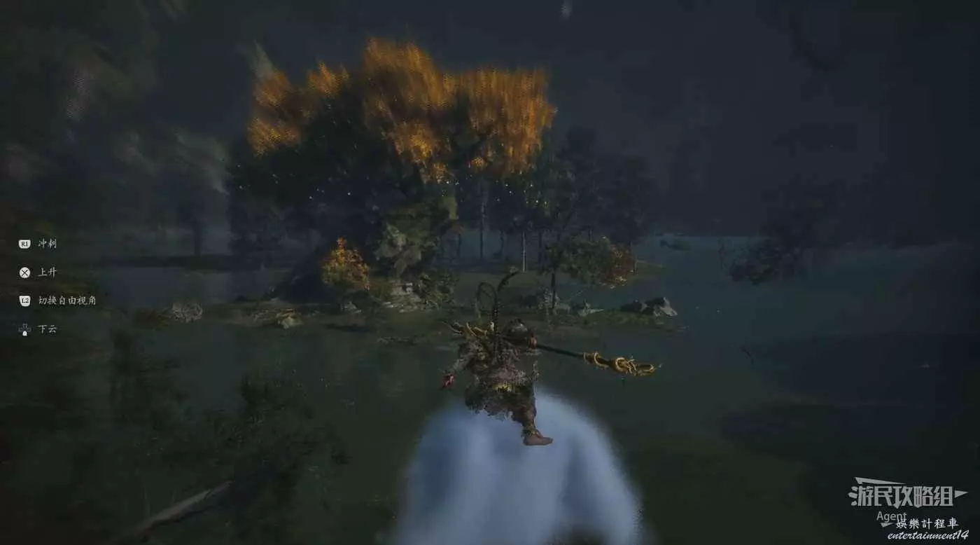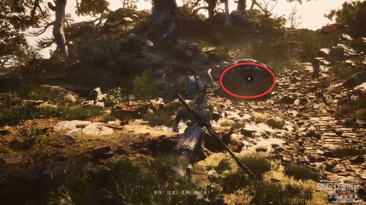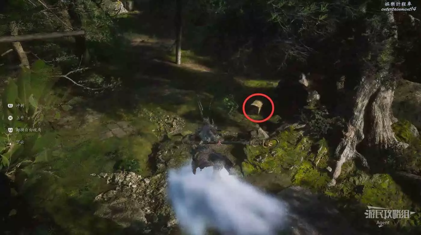 其他大聖裝備都拿到後,到橙黃色的樹(即捕螂汀土地廟)這裡觸發豬八戒抓螳螂的劇情。