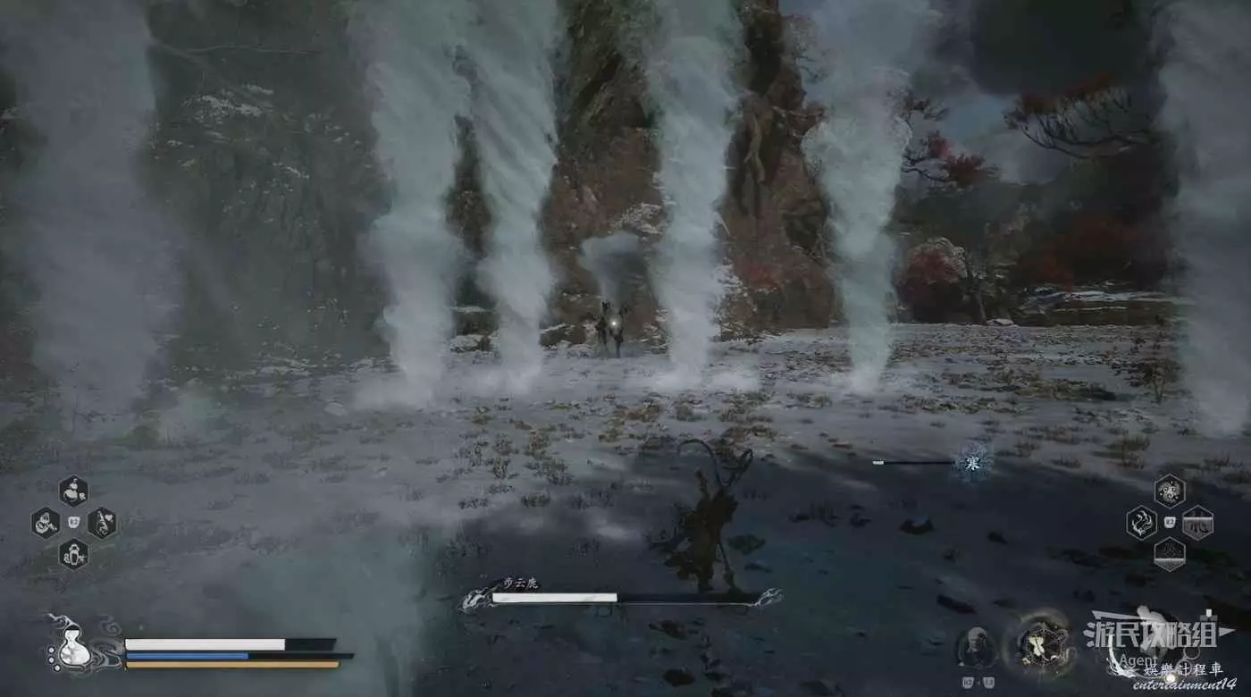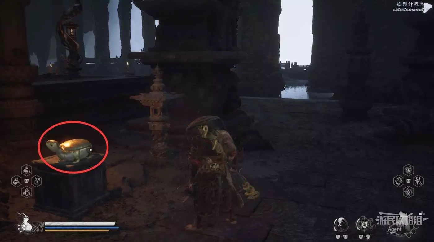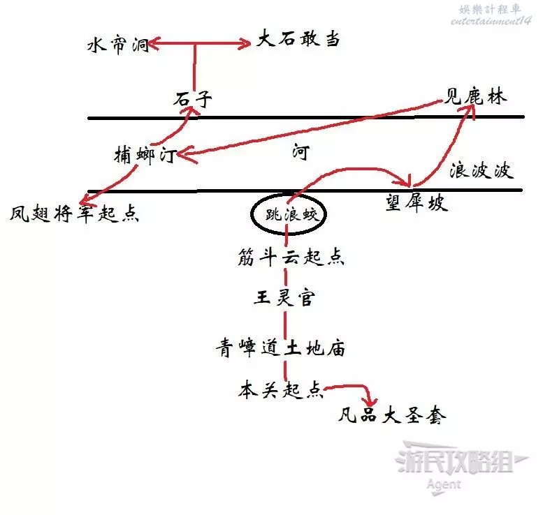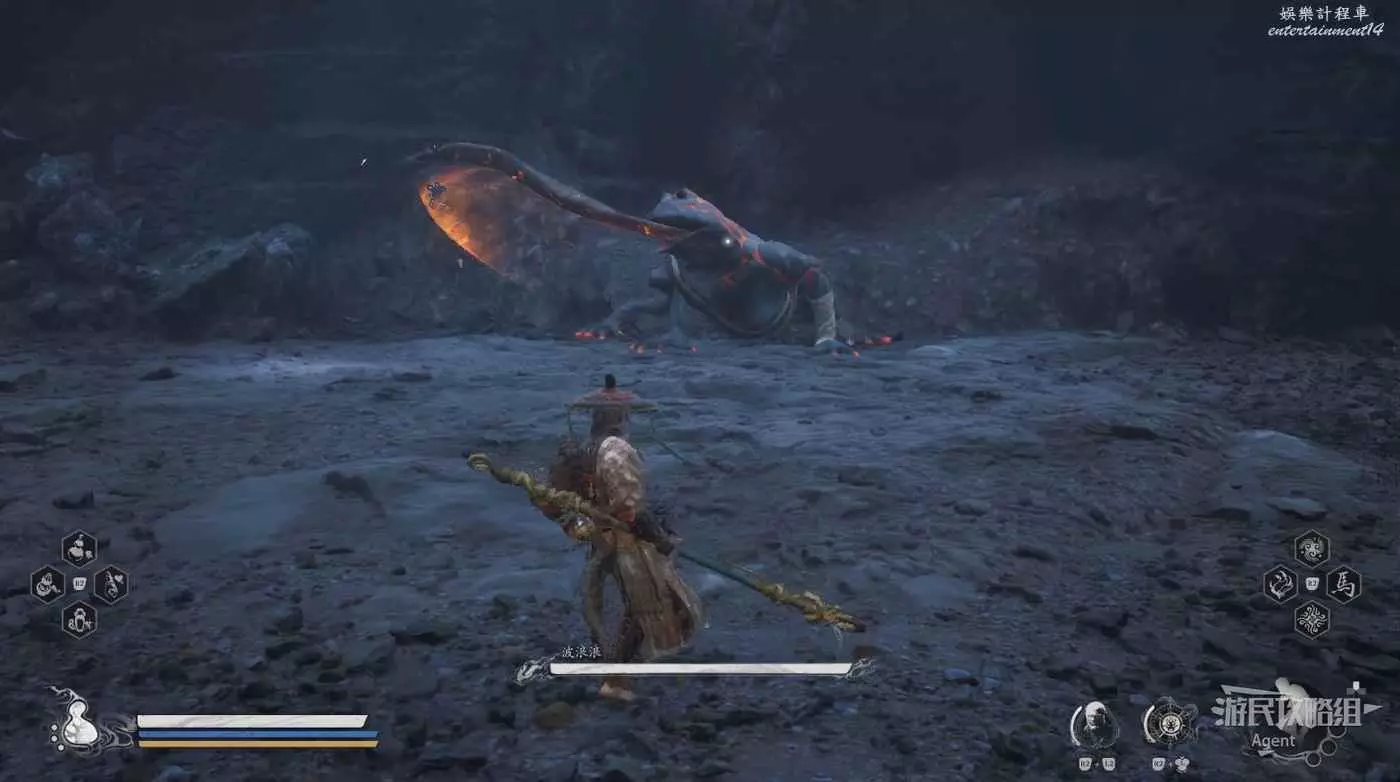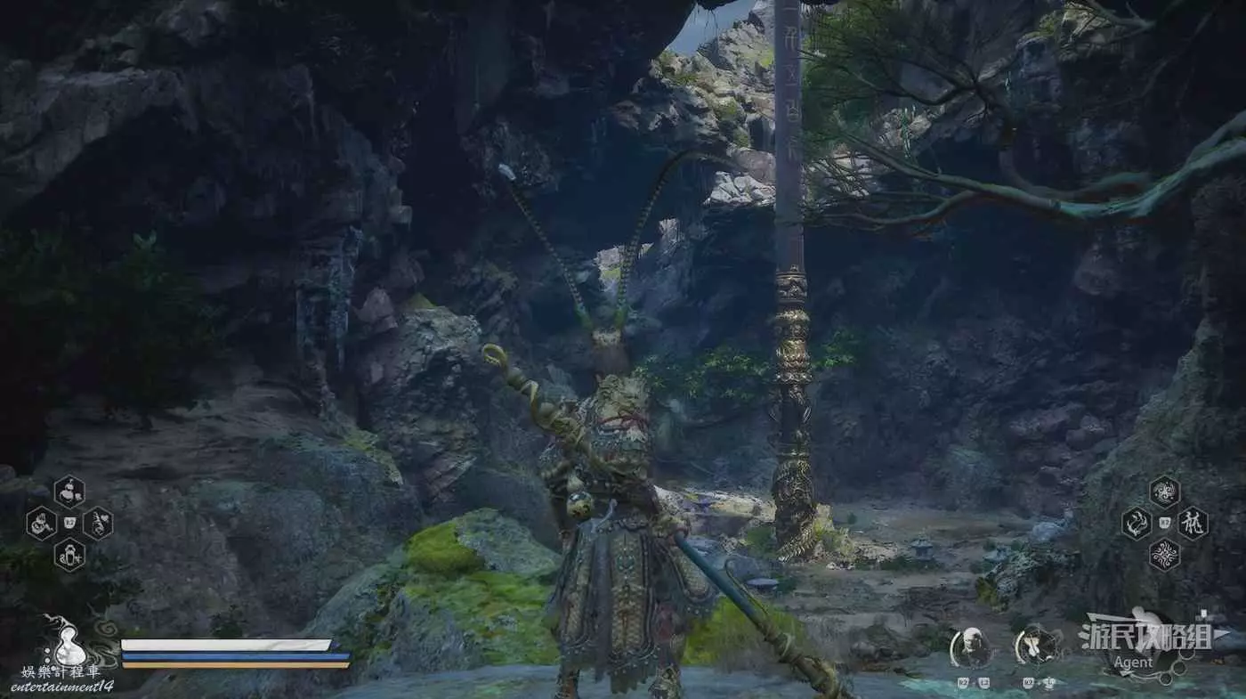 必須先跟著攻略打完前面所有的隱藏關卡,包括第三關的翠笠武師瓜田支線見到彌勒佛,才能進入這最後的隱藏關卡。其實前面幾個隱藏關卡的NPC都是二郎神安排的梅山兄弟,考驗並幫助小猴子獲得制服關底BOSS的法寶或法術的。