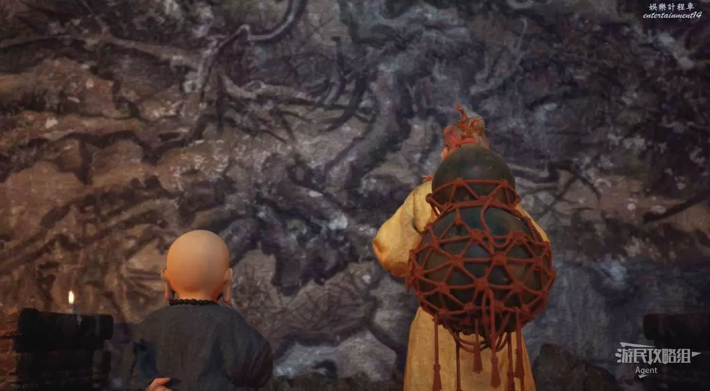 正中間的壁畫還沒有解鎖,走過去看到彌勒佛觸發劇情。之前在瓜田他說的孫悟空的故人,終於可以見到了。