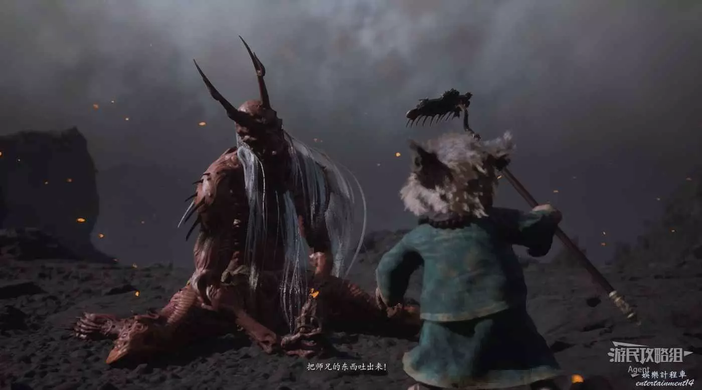 來到牛魔王面前,打紅孩兒。紅孩兒二階段會變身夜叉王,把夜叉王打到只剩一絲血時,放著不打等一會兒,會觸發額外的處決動畫,不過不會影響後續劇情。
