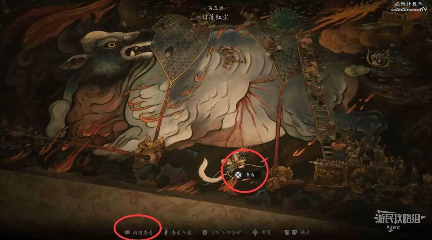 最後看壁畫時,可以放大細看各個人物,有很多劇情對話可以觸發。前四關如果忘了看,此時可向前翻頁查看。