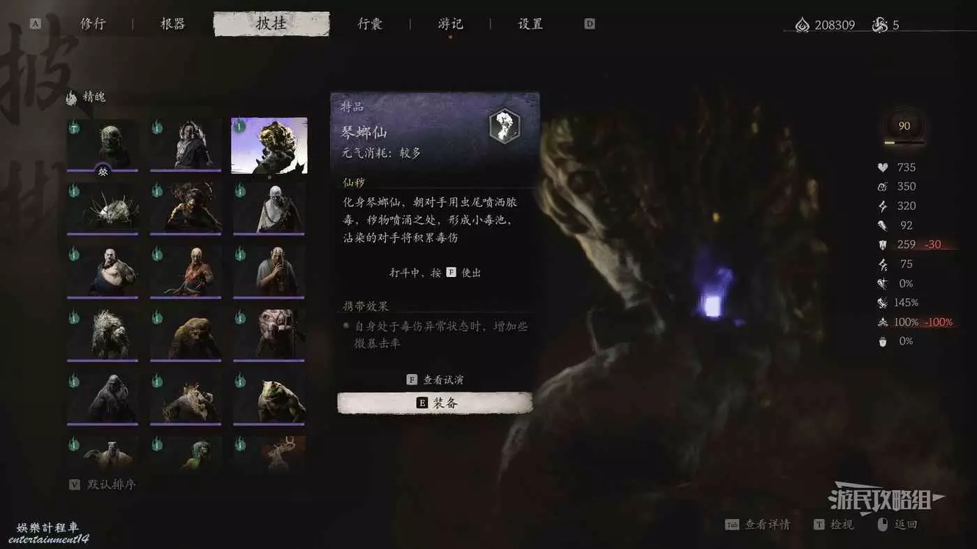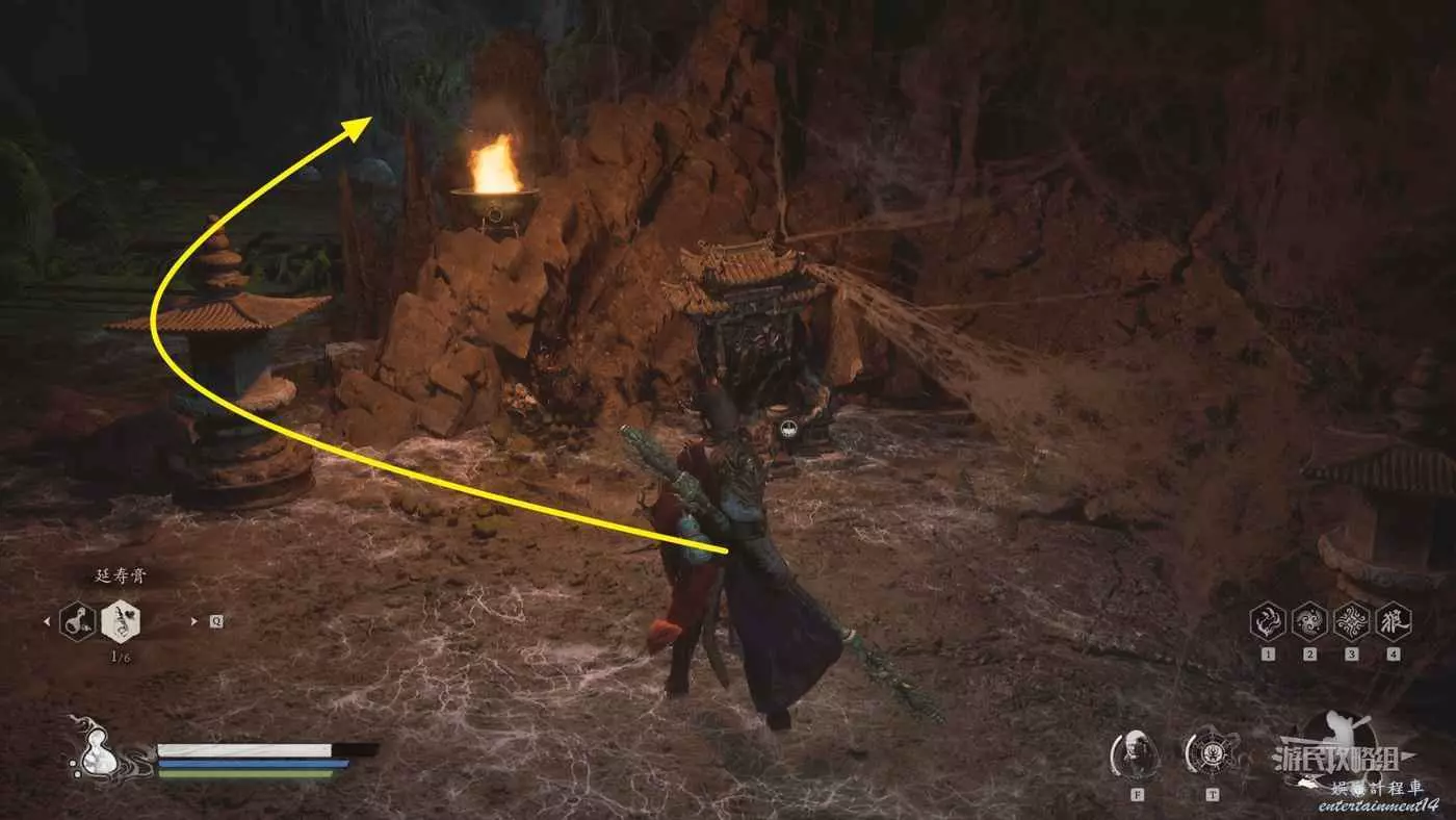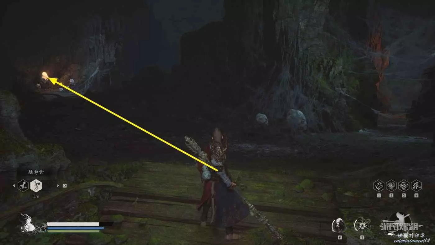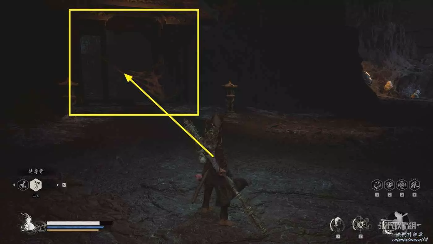 進入門洞可以看到5個寶箱,在寶箱後面的牆壁上還有一個動,從這個洞離開到達室外,在懸崖邊就能看到BOSS【琴螂仙】,擊敗它獲得【琴螂原體】。