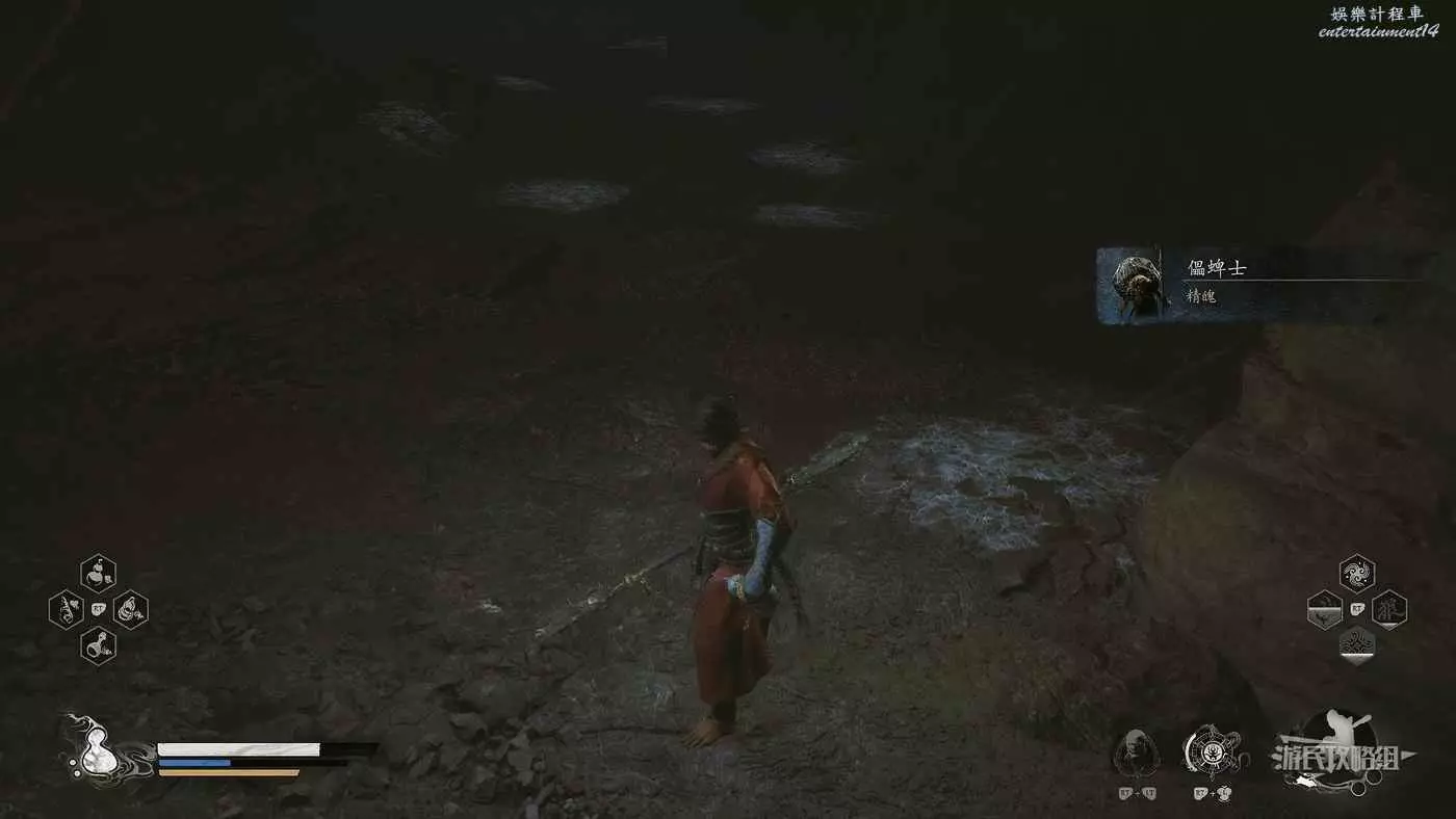 黑神話 悟空 儡蜱士精魄位置指引 31 8 月 2024-08-31 廣告 作者:瑞破受氣包 來源:遊民星空 位置及路線 從第四章【盤絲洞-墮龍壁】土地廟出發,參考下圖,面對土地廟,往左往上走(就是土地廟背後上層的區域)。 前方可以看到一個佈滿蛛網的洞口,進入洞口。 進洞之後,不要往下跳,貼著右側的岩壁往前走。 轉彎後繼續貼著右側岩壁走到頭上樓梯,繼續貼著岩壁往前走就能看到前方有個冒藍光的小怪,擊殺獲得精魄。注意旁邊怪很多,要麼用小猴子分身要麼就拉出來一個一個打。