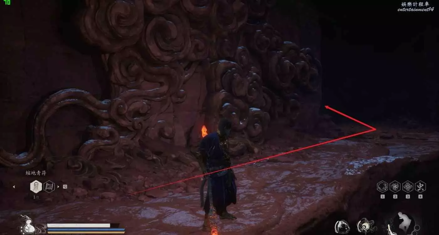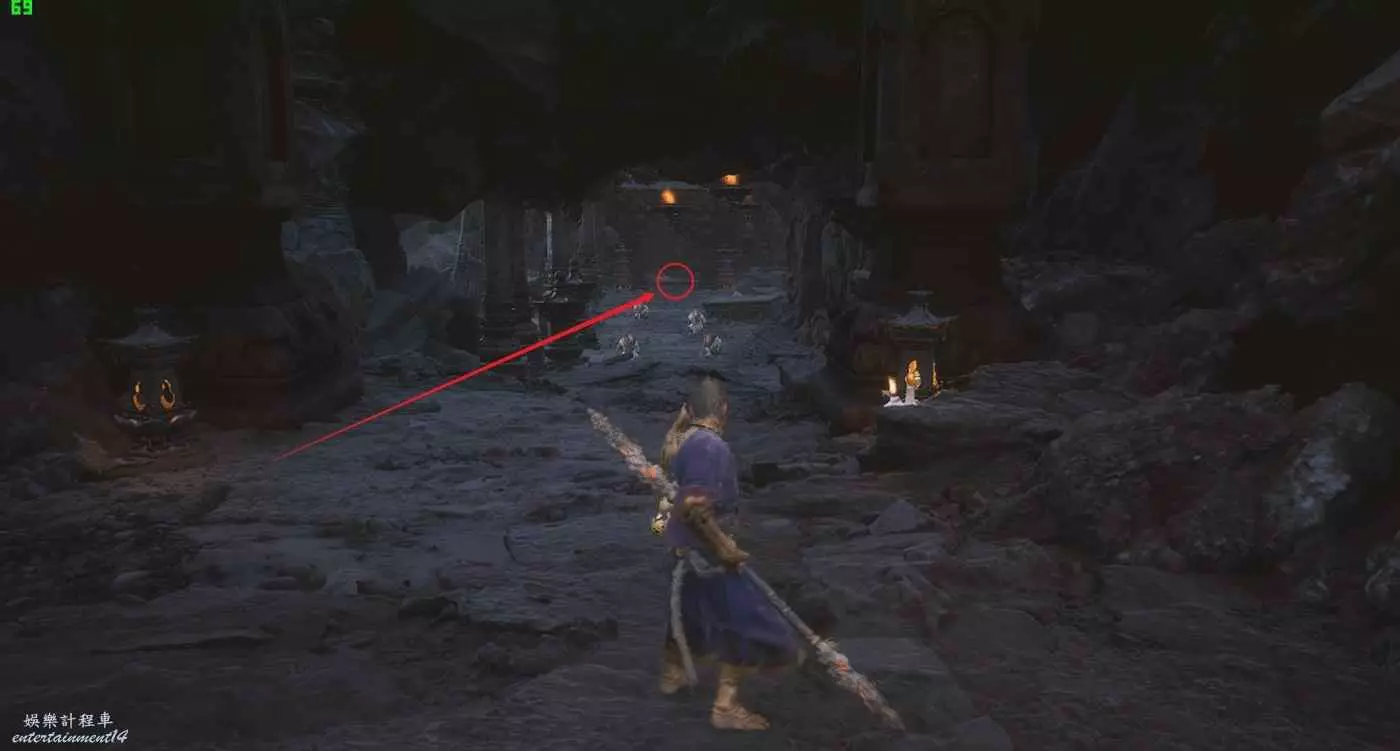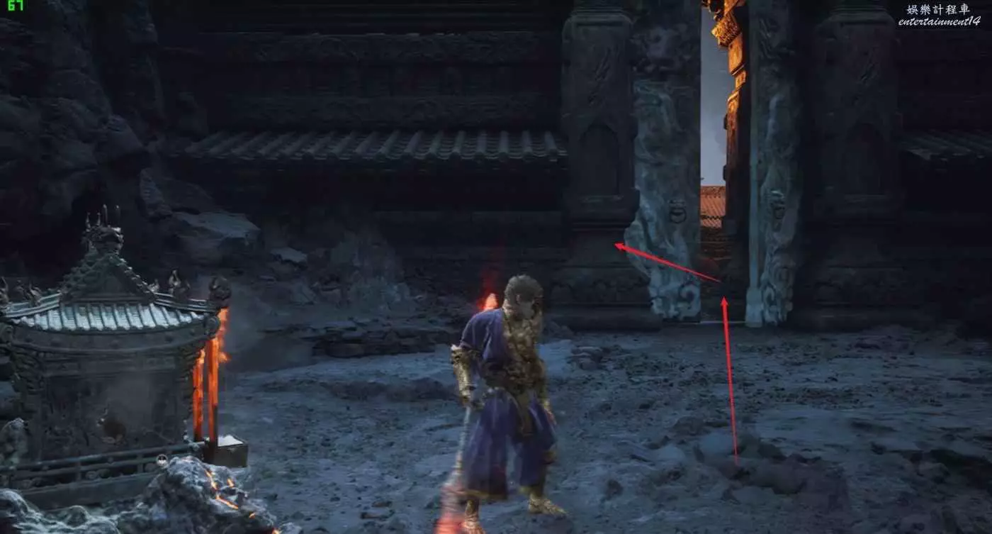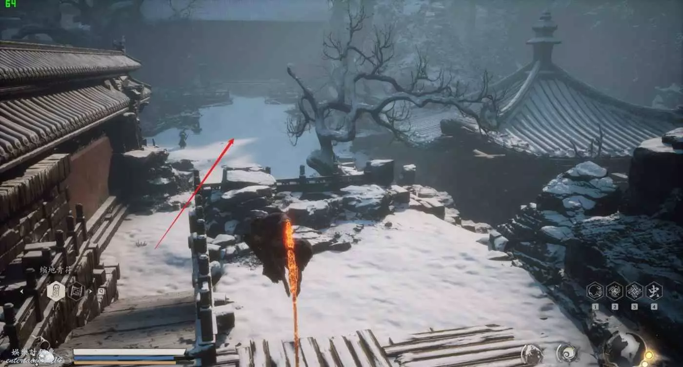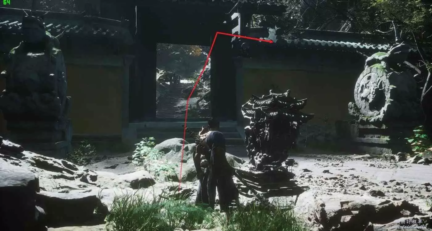 在主線中大鐵球掉下來後,我們從翠雲殿往上走,在門口左側的鐵球處就能吸收精魄