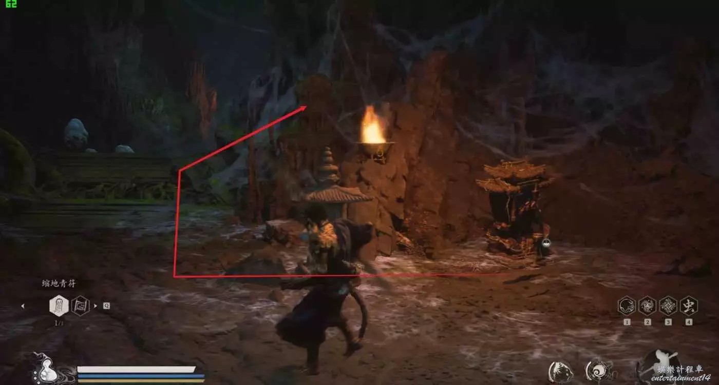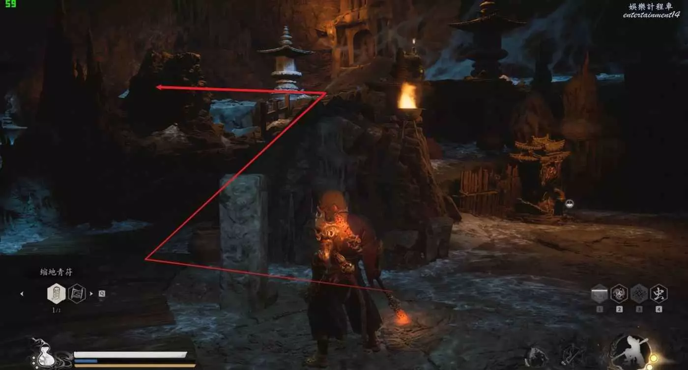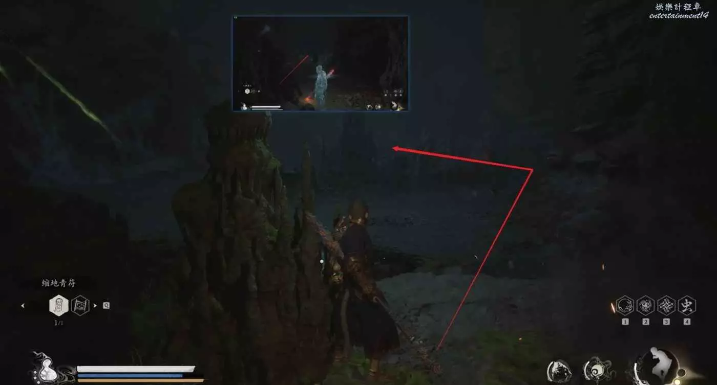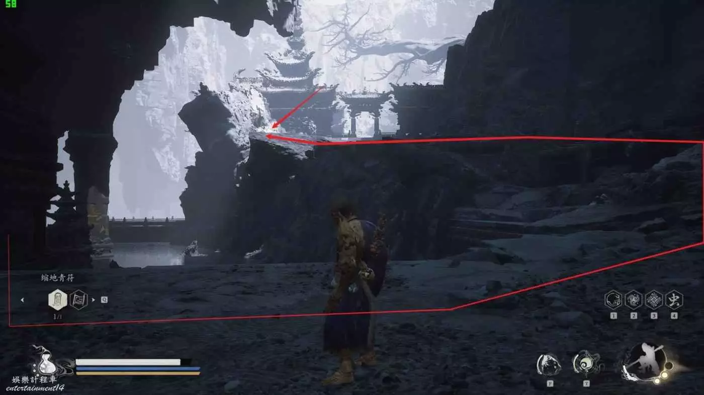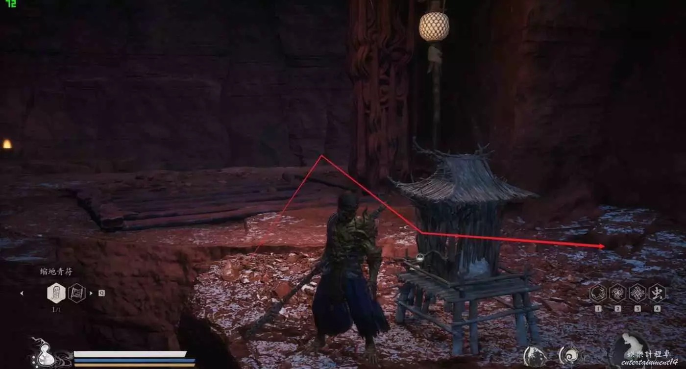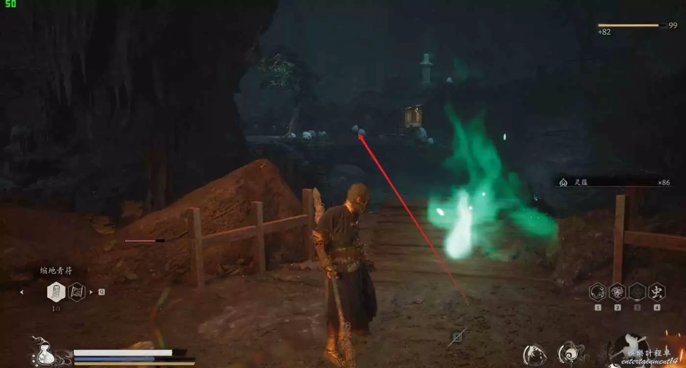 在主線中大鐵球掉下來後,我們從翠雲殿往上走,在門口左側的鐵球處就能吸收精魄