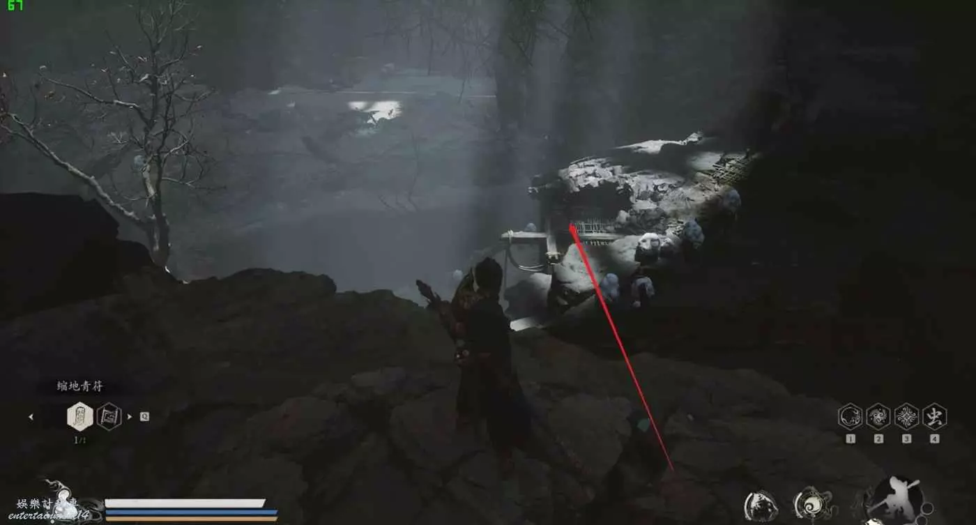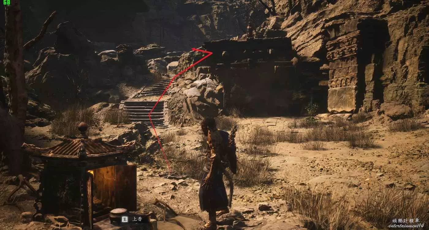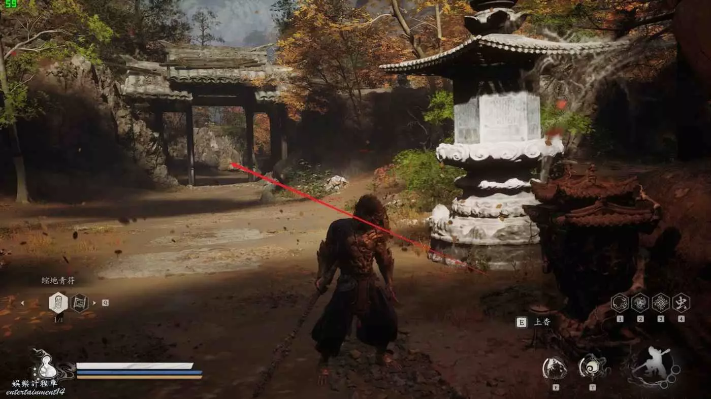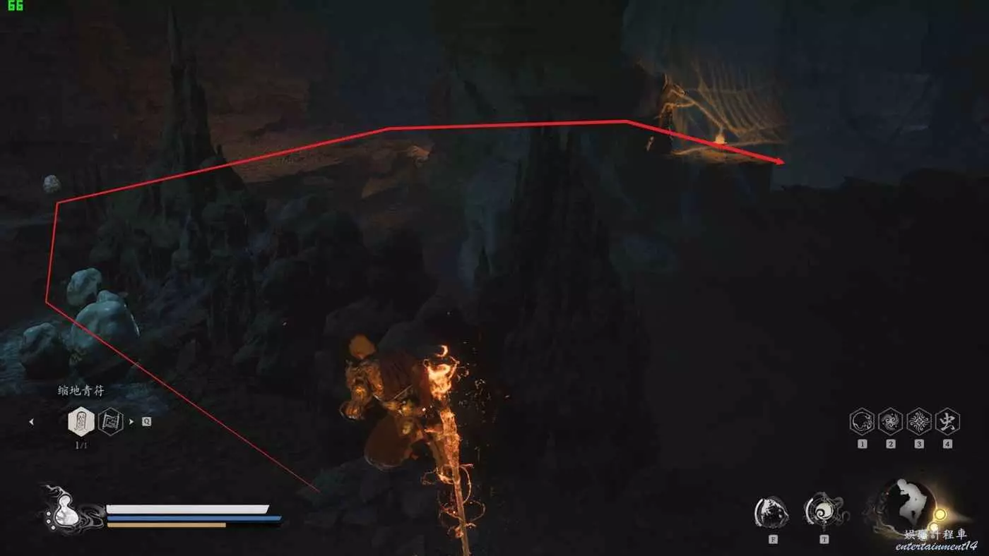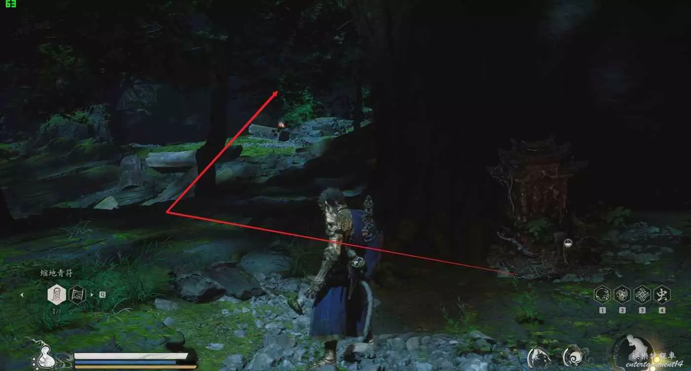 在主線中大鐵球掉下來後,我們從翠雲殿往上走,在門口左側的鐵球處就能吸收精魄