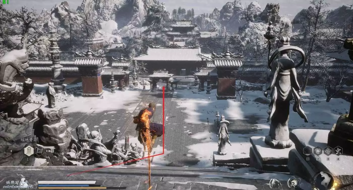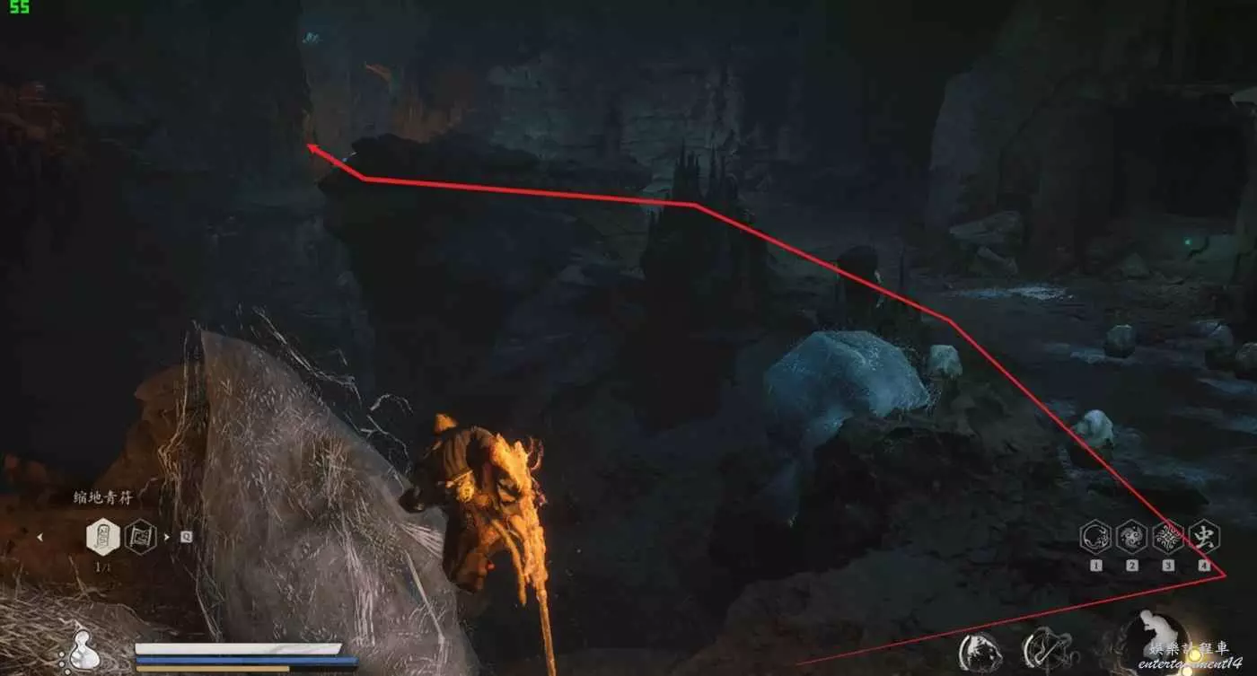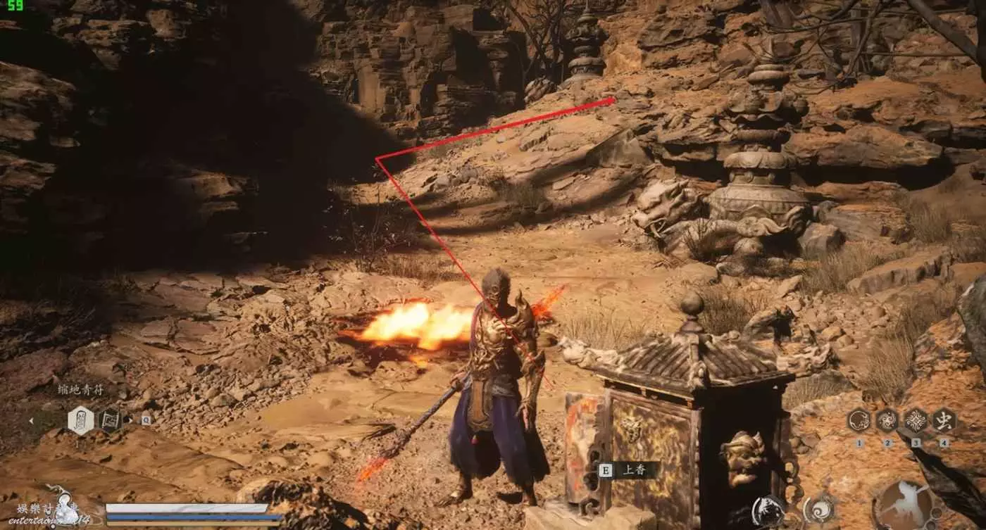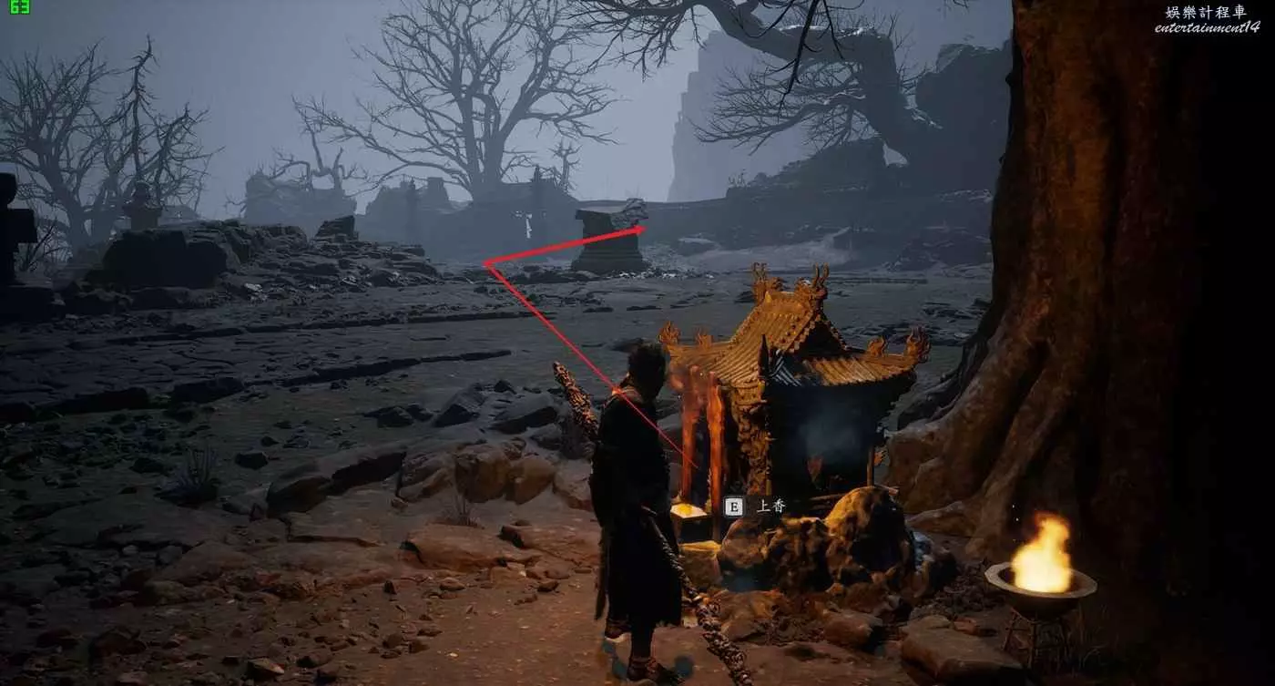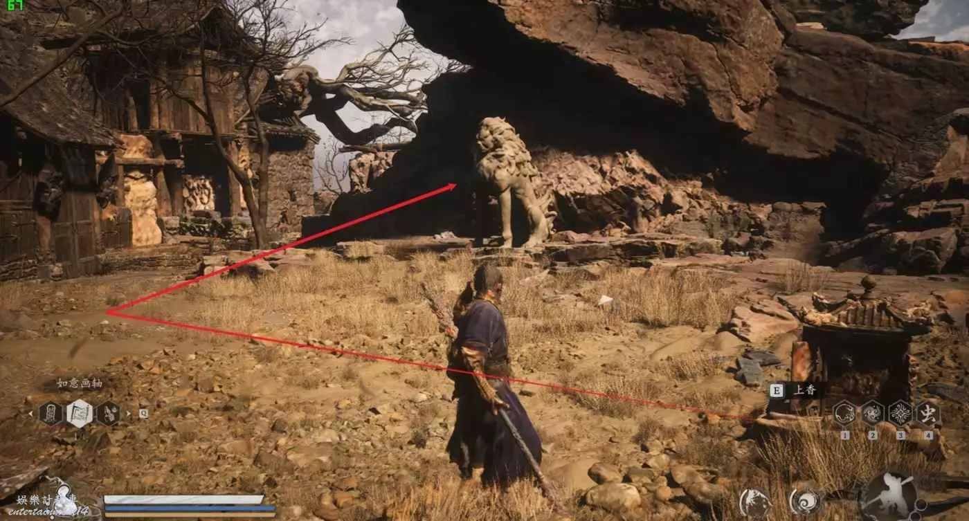 在主線中大鐵球掉下來後,我們從翠雲殿往上走,在門口左側的鐵球處就能吸收精魄