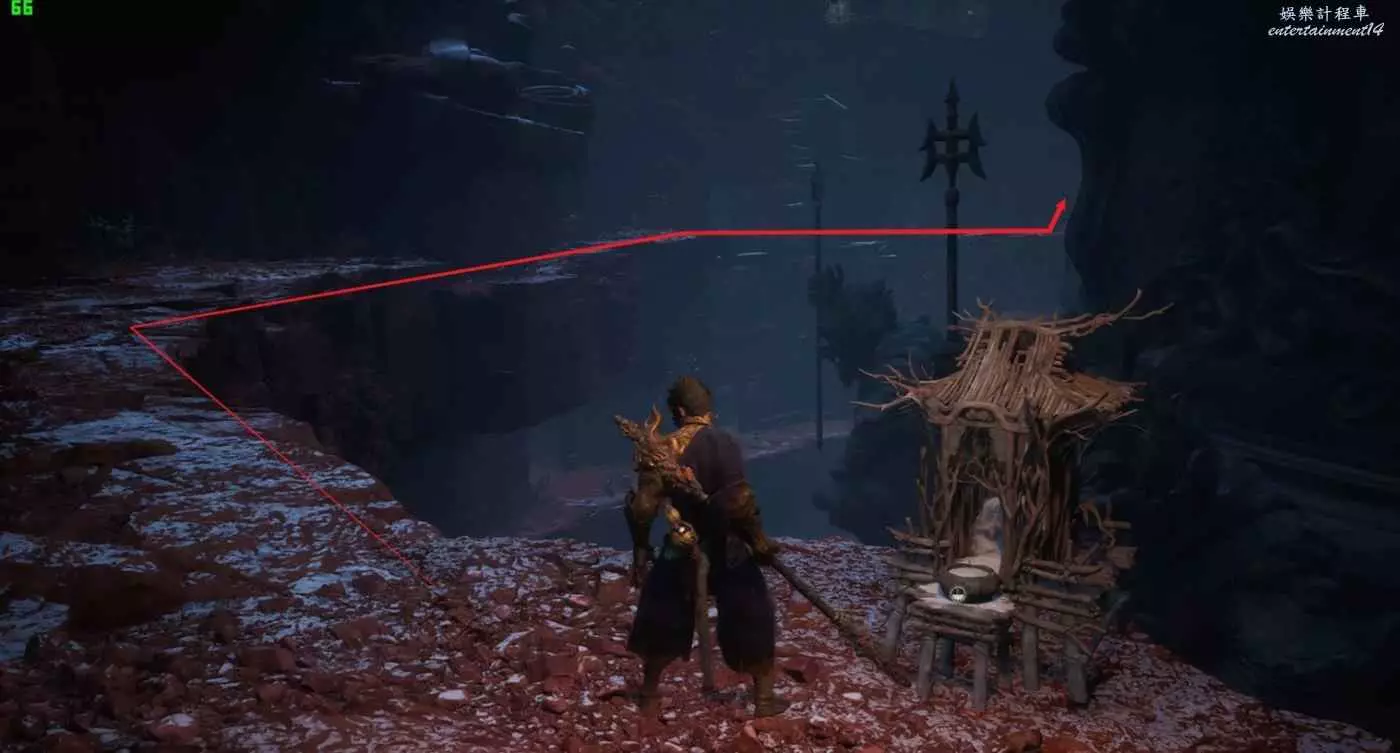 往左走一直往前到懸崖跳下去,再往前走一堆石像的位置就是